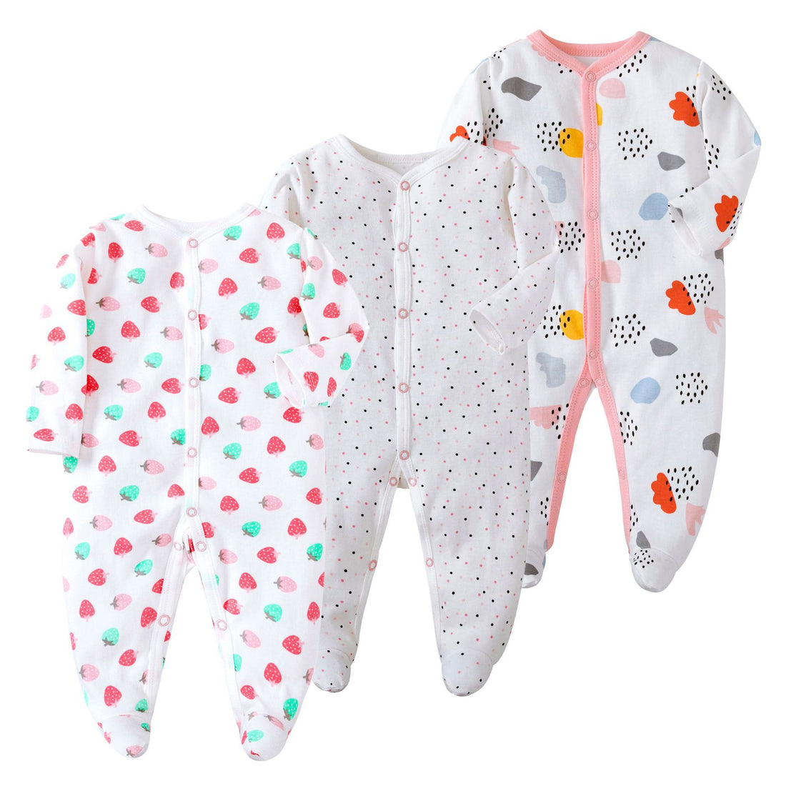 0-12M 3pk Baby Girl Cotton Long Sleeve Footed Onesie