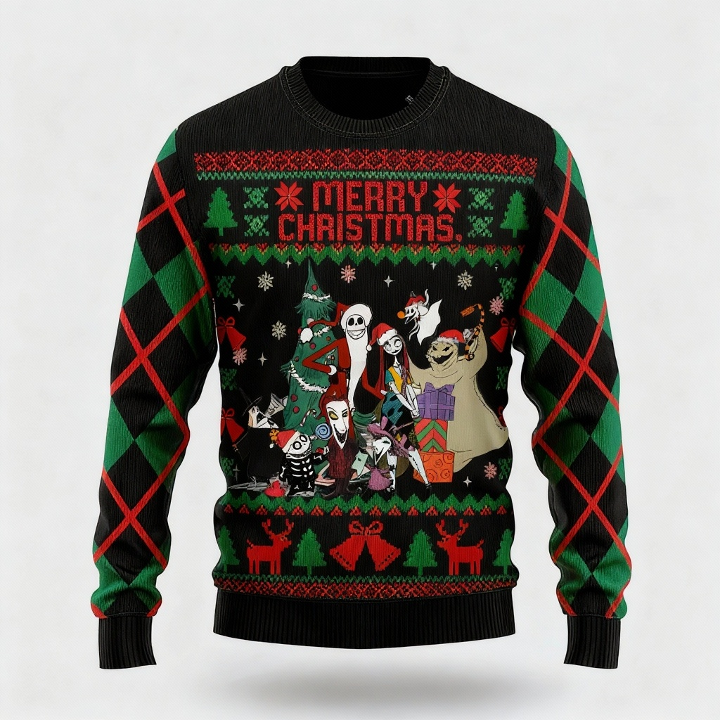 Santa Claus Cartoon Pattern Design - Maximalist Christmas Print Ugly Sweater