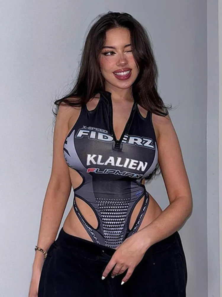 Women's Hollow Letter Printed Skinny Sleeveless Bodysuits