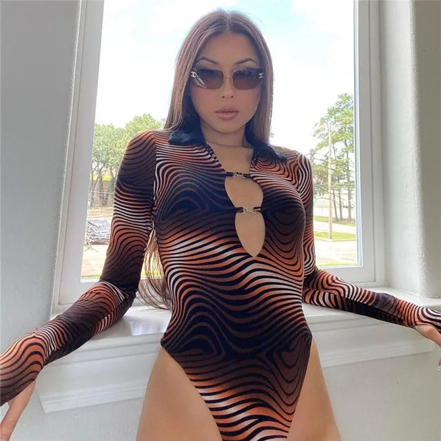 Long Sleeve Skinny Hollow Out Women Bodysuit