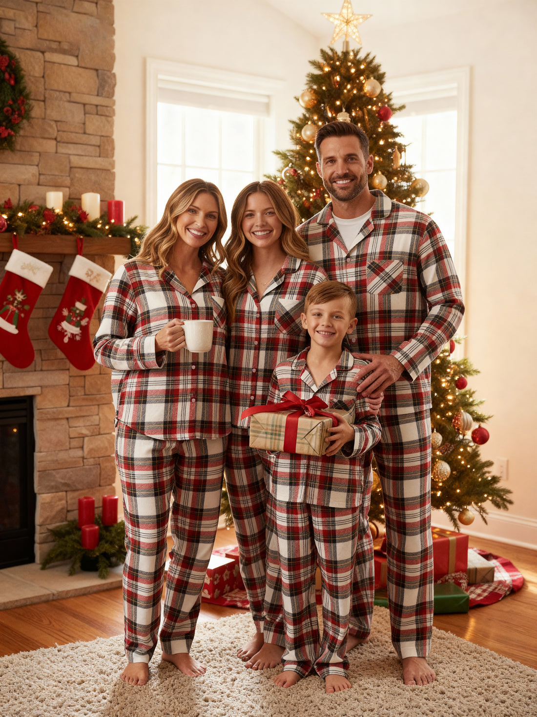Matching Family Sleepwear Red White Plaid Christmas Pajamas Set