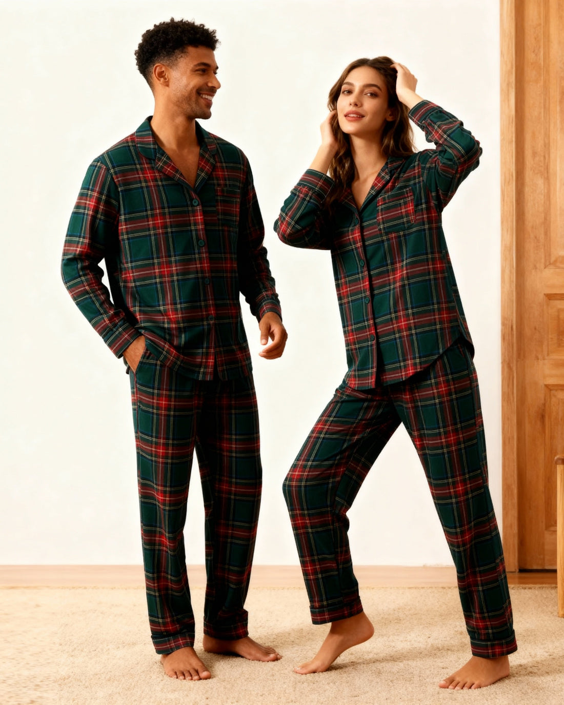 Holiday Couple Green Plaid Christmas Pajamas Set