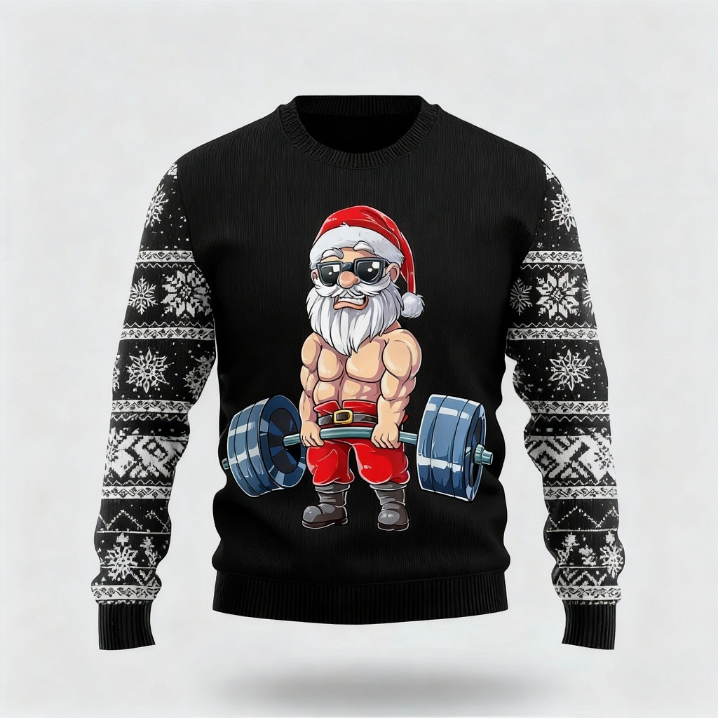 Powerful Santa Claus Print - Black Holiday Icon Sweater