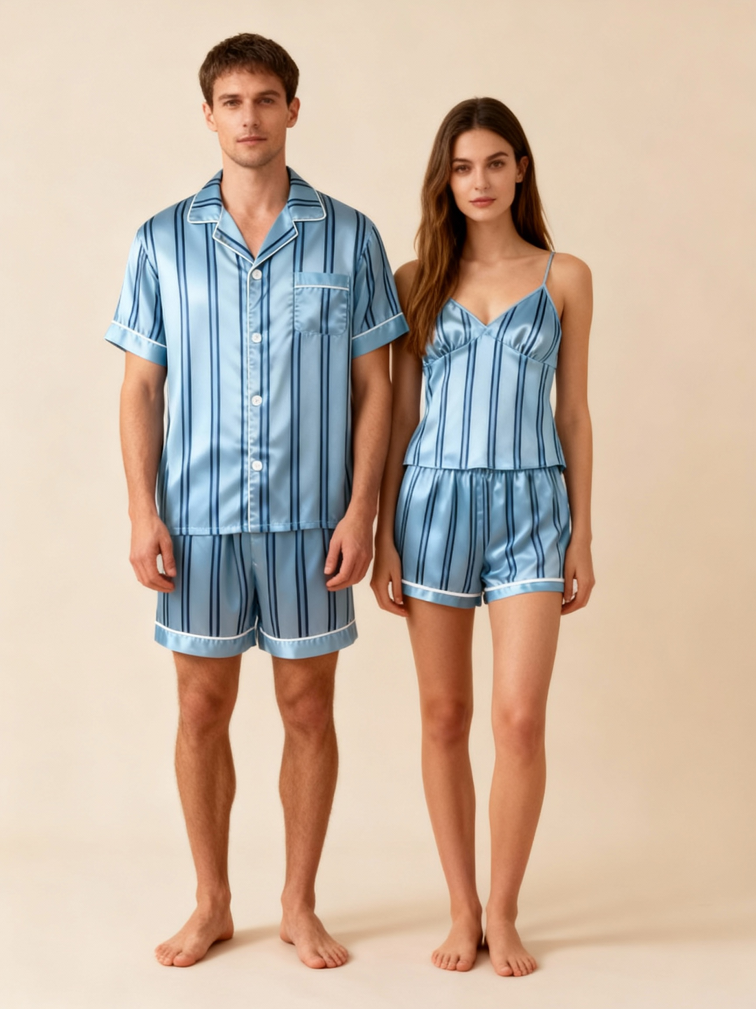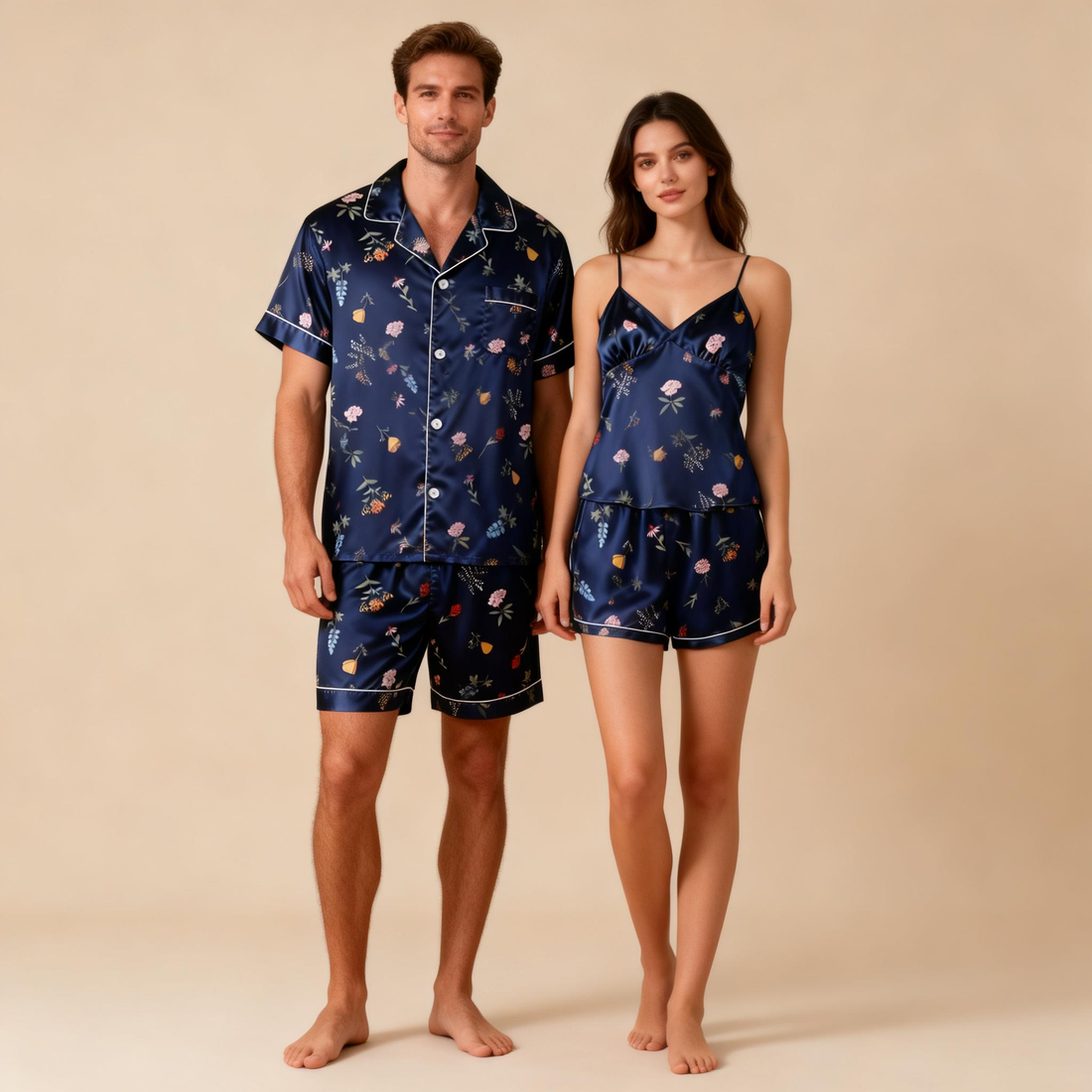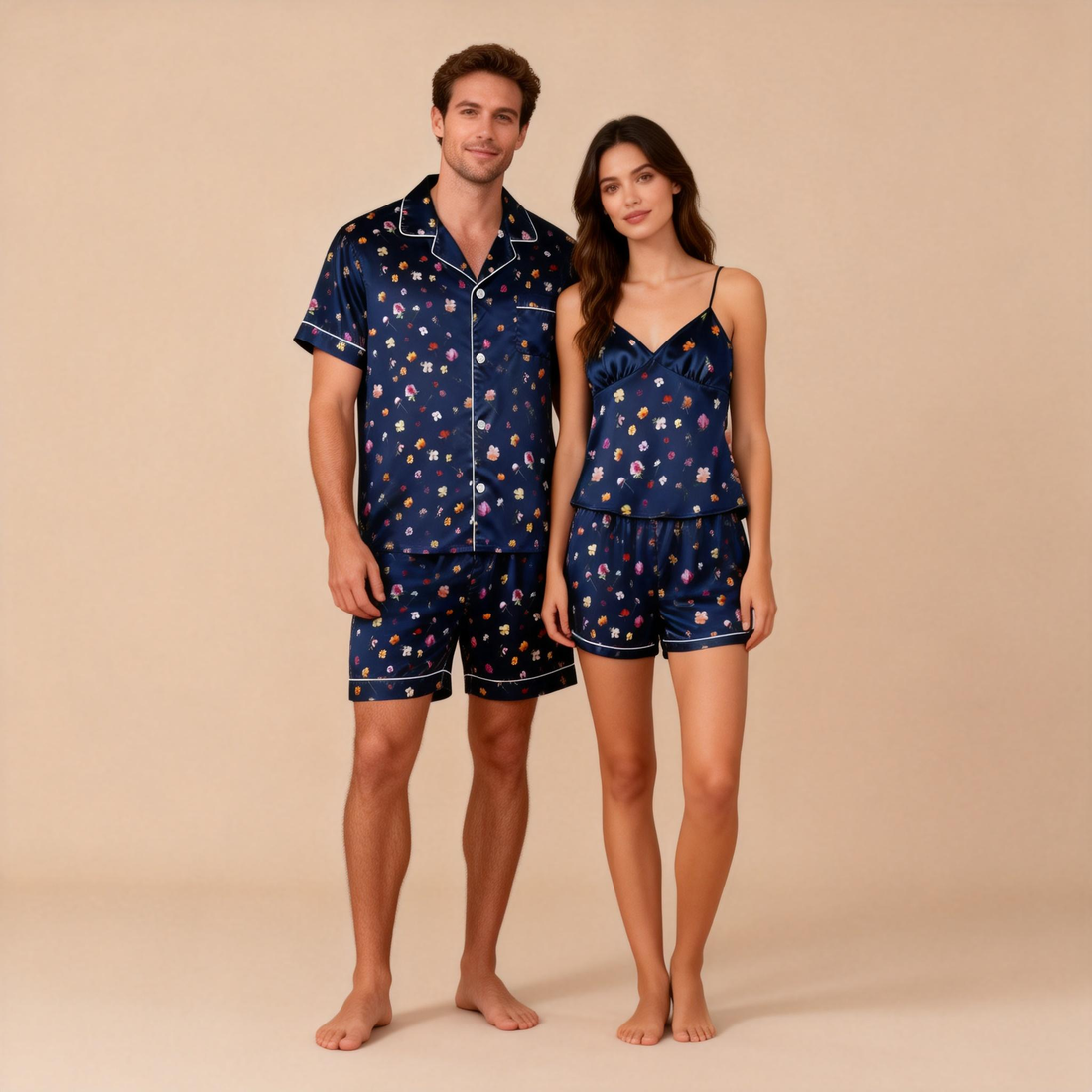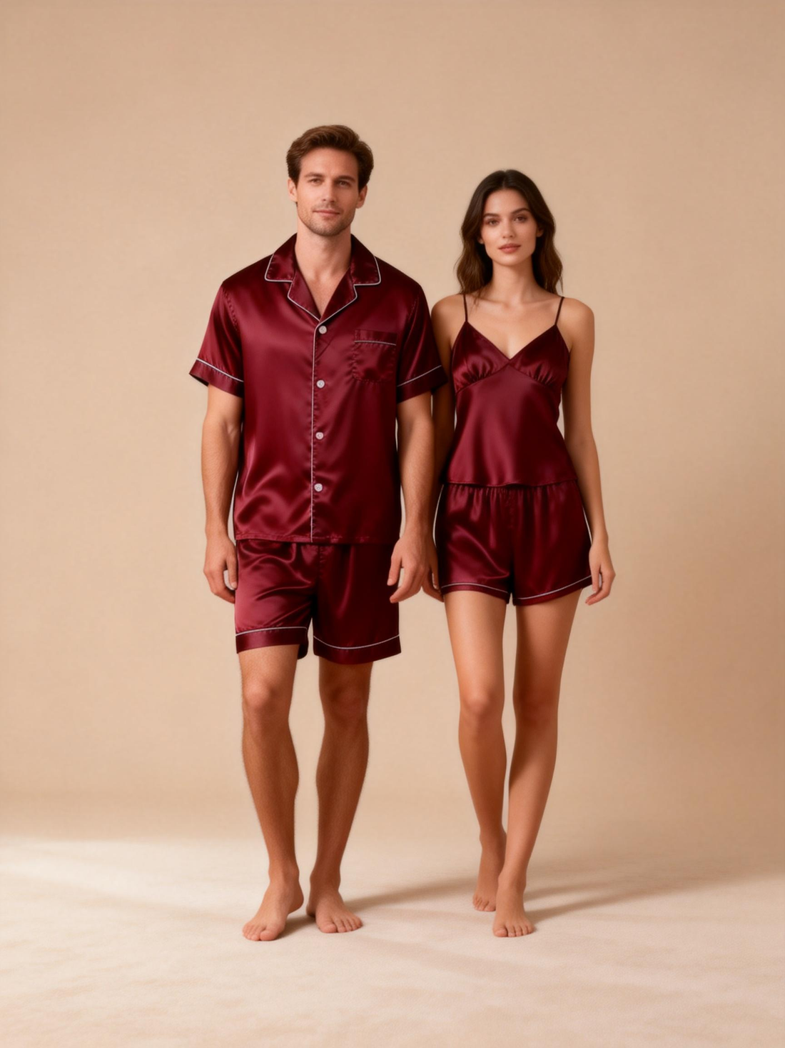 Silky Classic Sleep Set for Couples – Satin Short Pajamas
