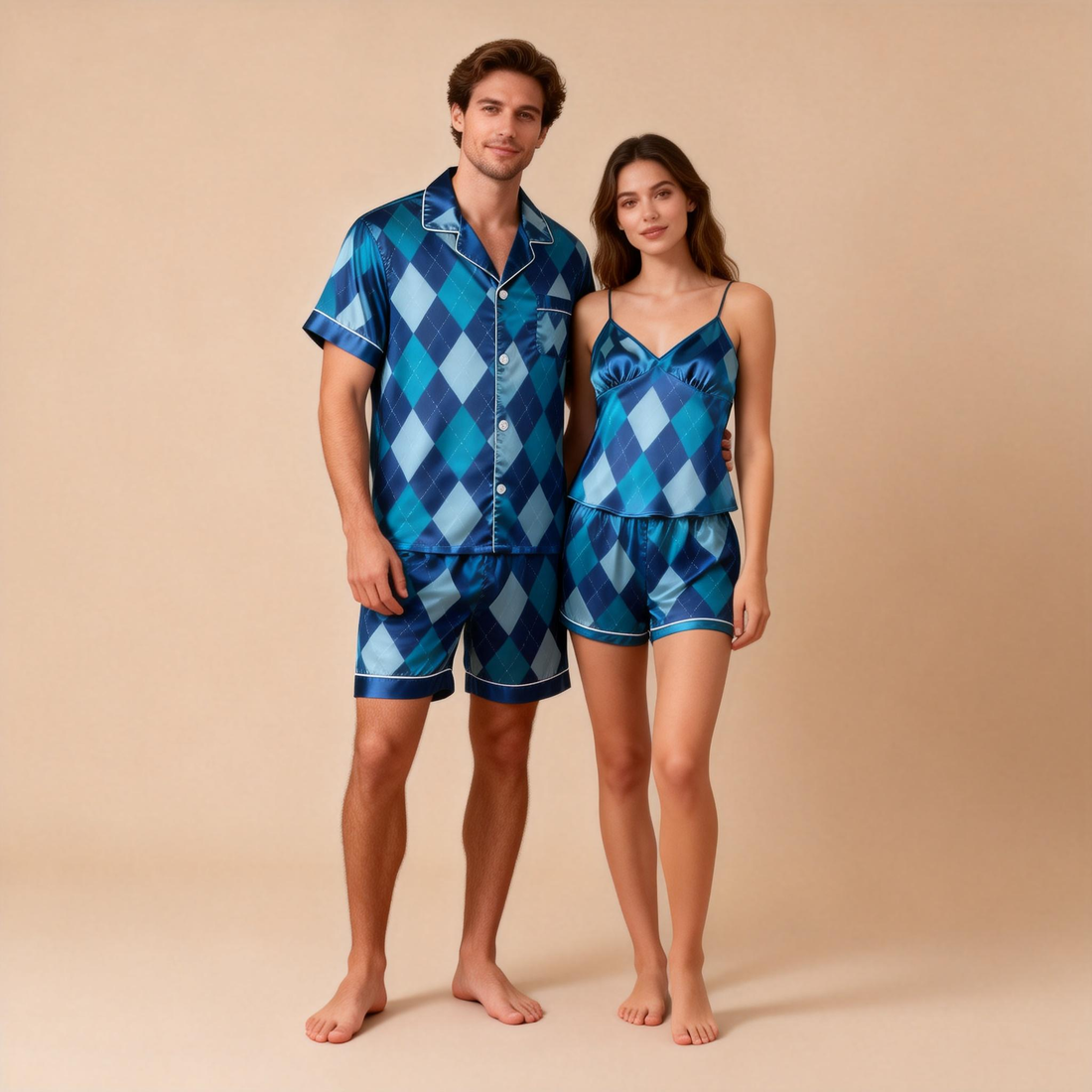 Couple’s Silky Bedtime Pajamas – Satin Sleep Shorts