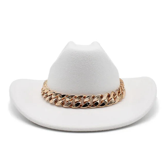 Vintage Western Cowboy Hat with Gold Chain Band