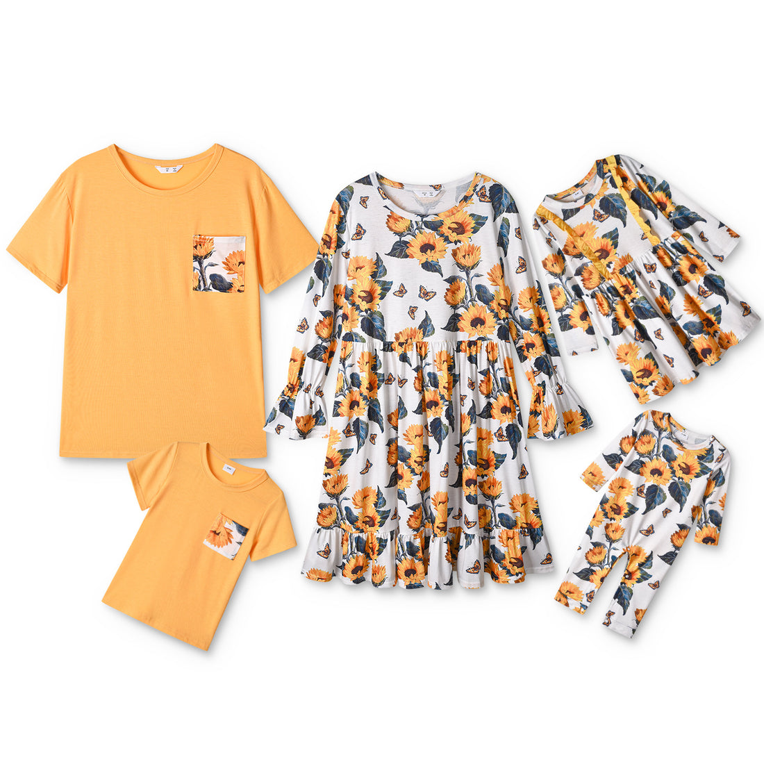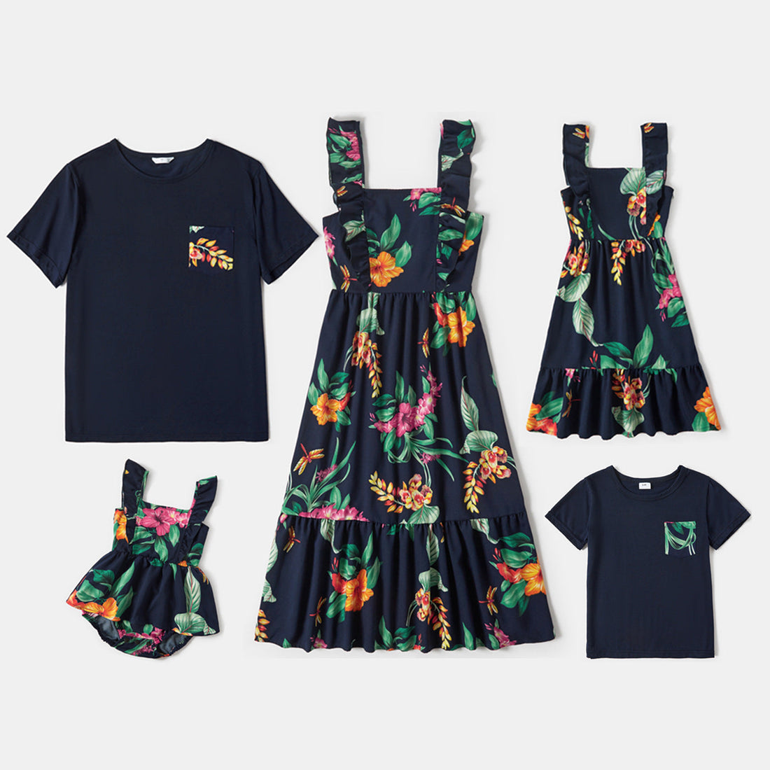 Family Matching Outfit Floral Print Dresses and T-shirts Sets