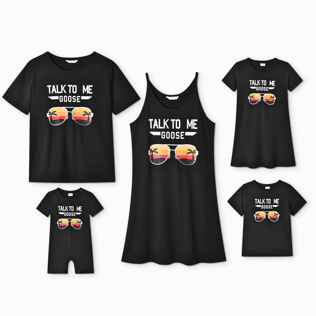 Family Matching Black Leaf Print Short-sleeve Dresses and T-shirts Sets