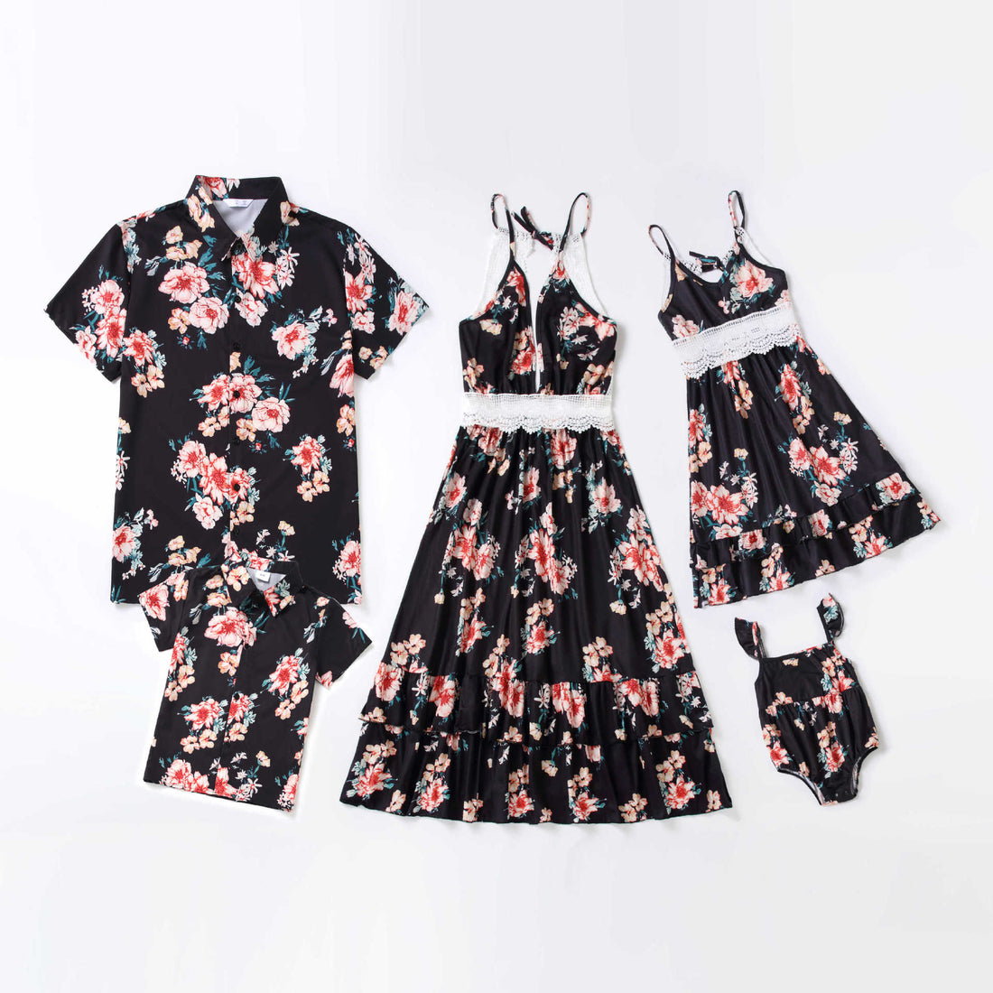 Family Matching All Over Floral Print Cami Dresses and T-shirts Sets