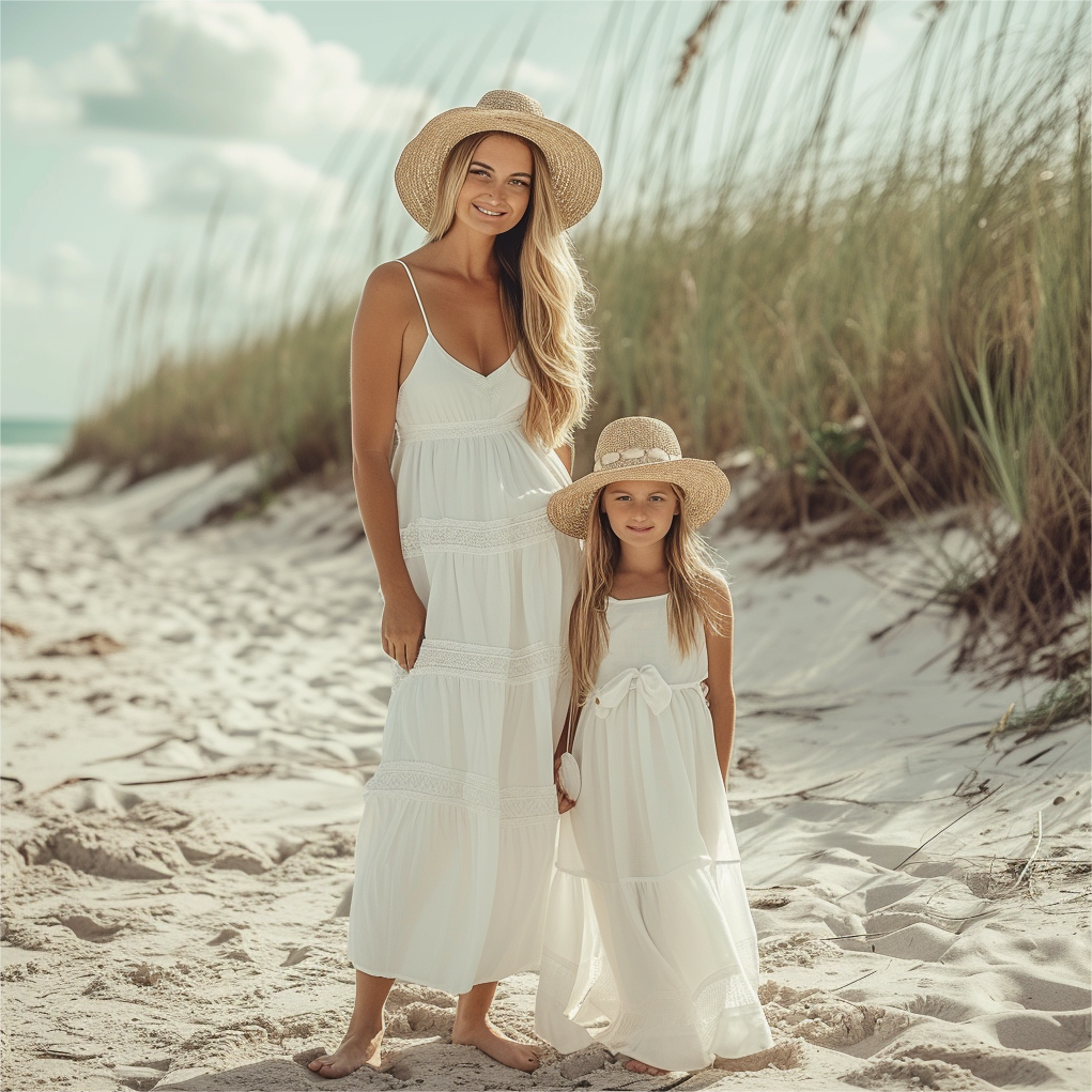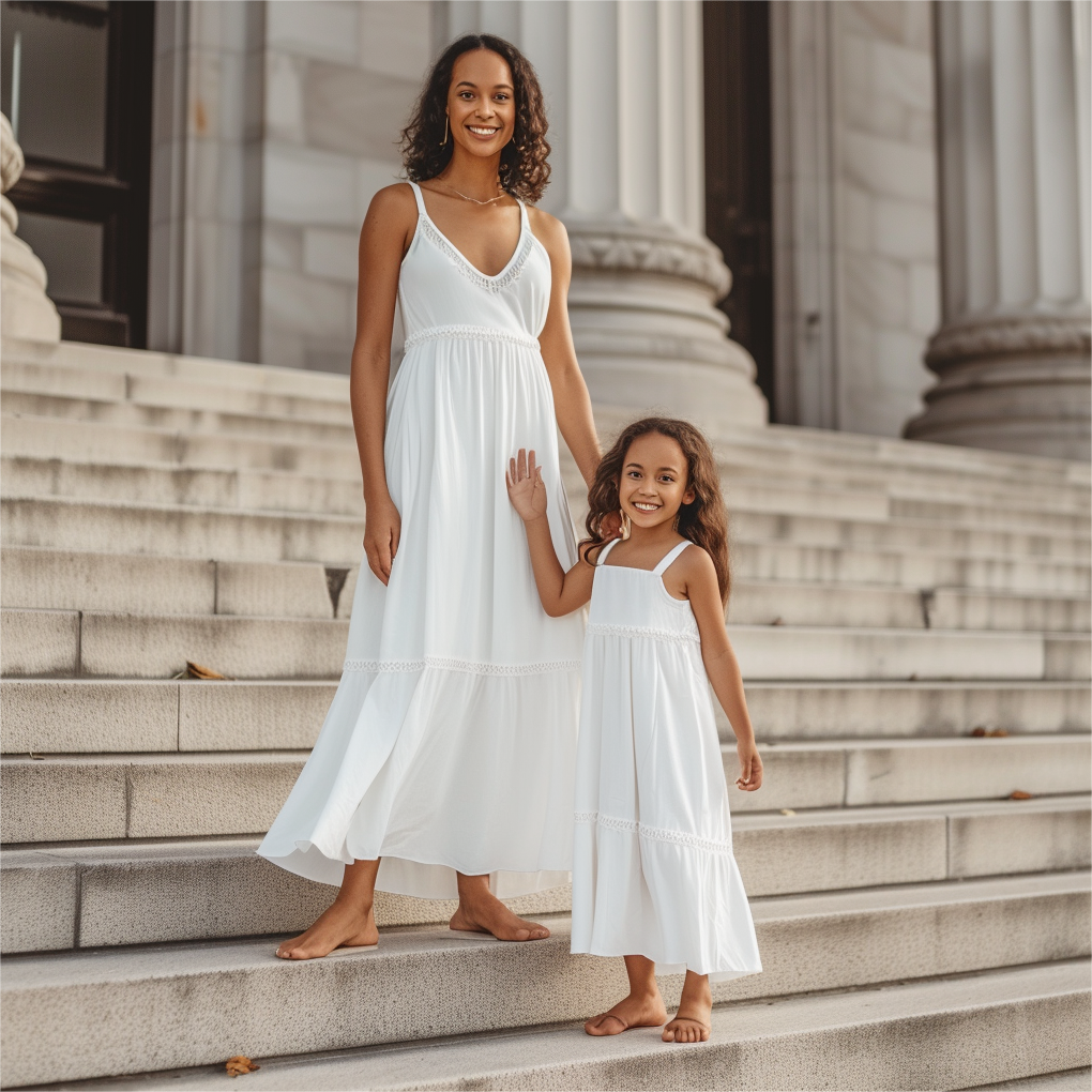 Mom and Daughter Matching White Cami Dress