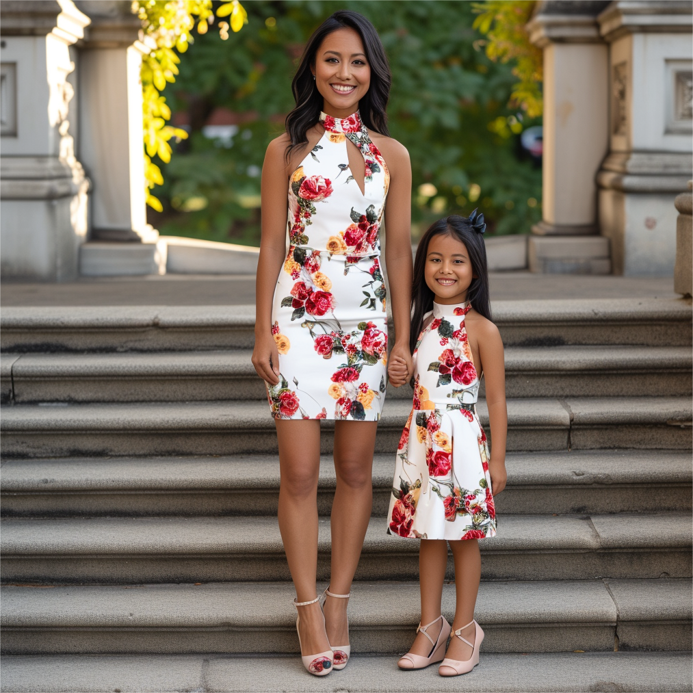 Mom and Daughter Matching Flower Print Halter Dress