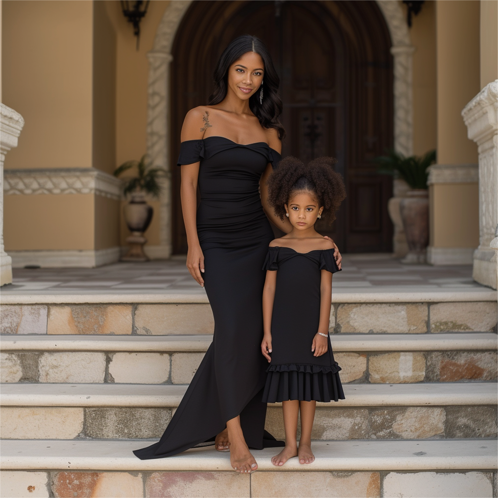 Mom and Daughter Matching Off Shoulder Dress