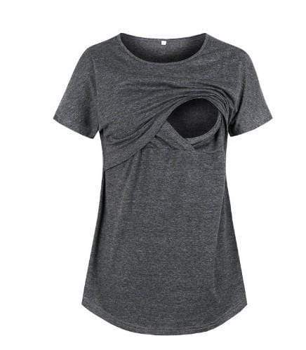 Stylish Asymmetric Short-sleeve Nursing Tee