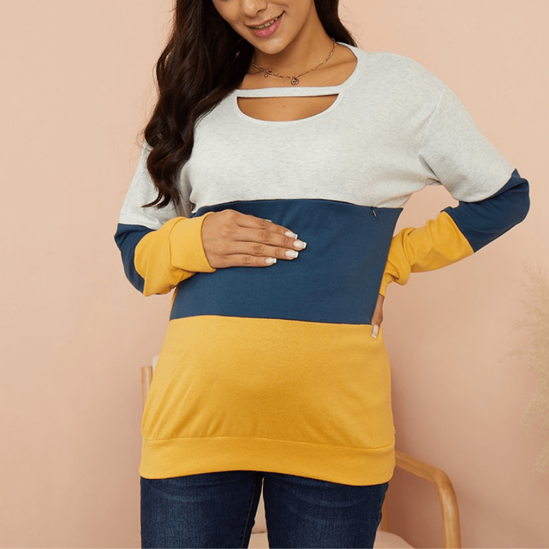 Colorful Colorblock Long-sleeve Nursing Top