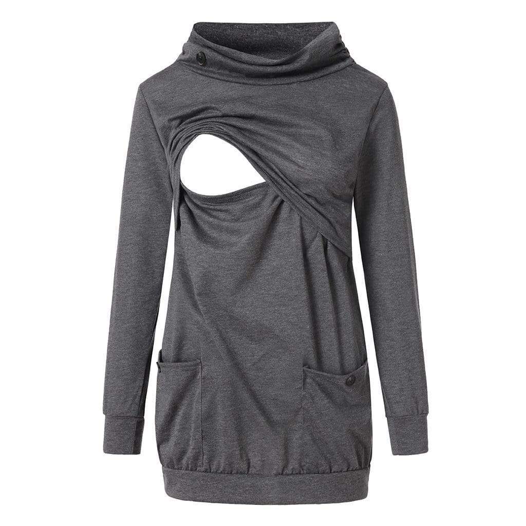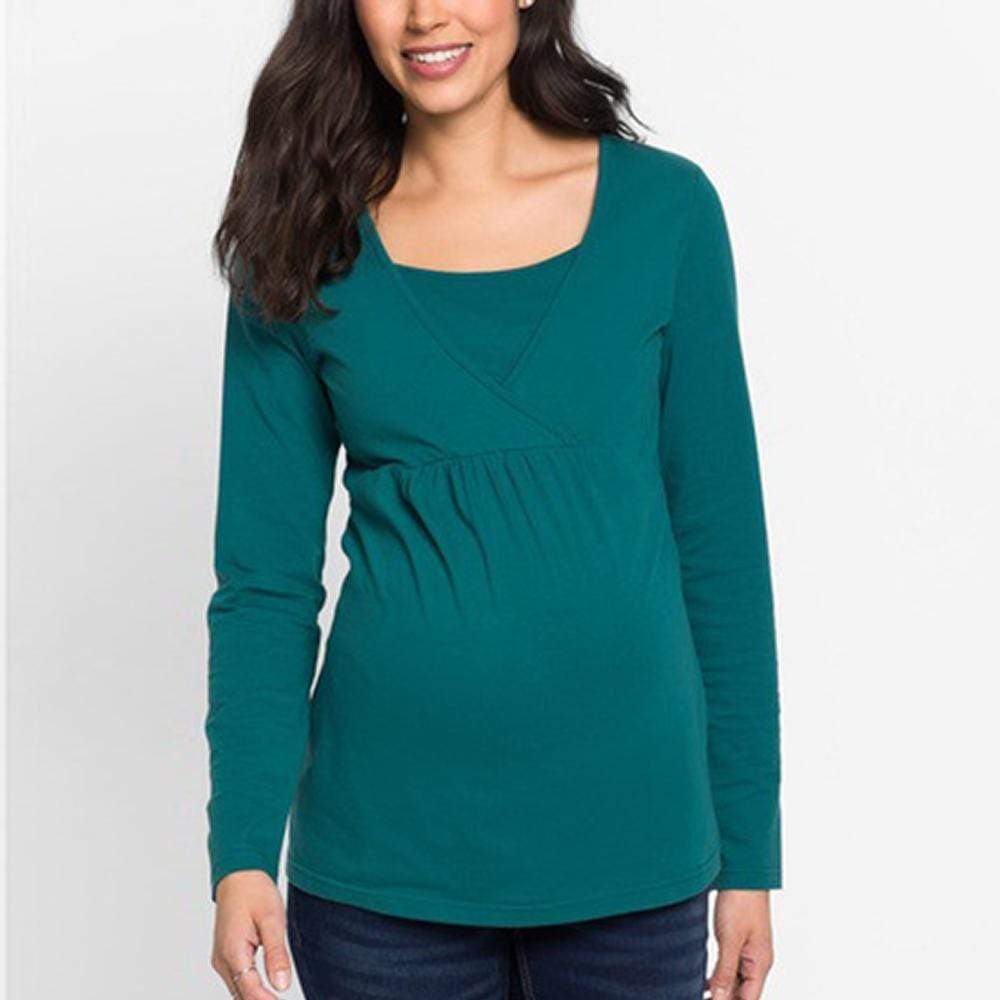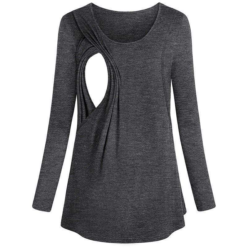 Stylish Solid Long-sleeve Maternity Nursing Top