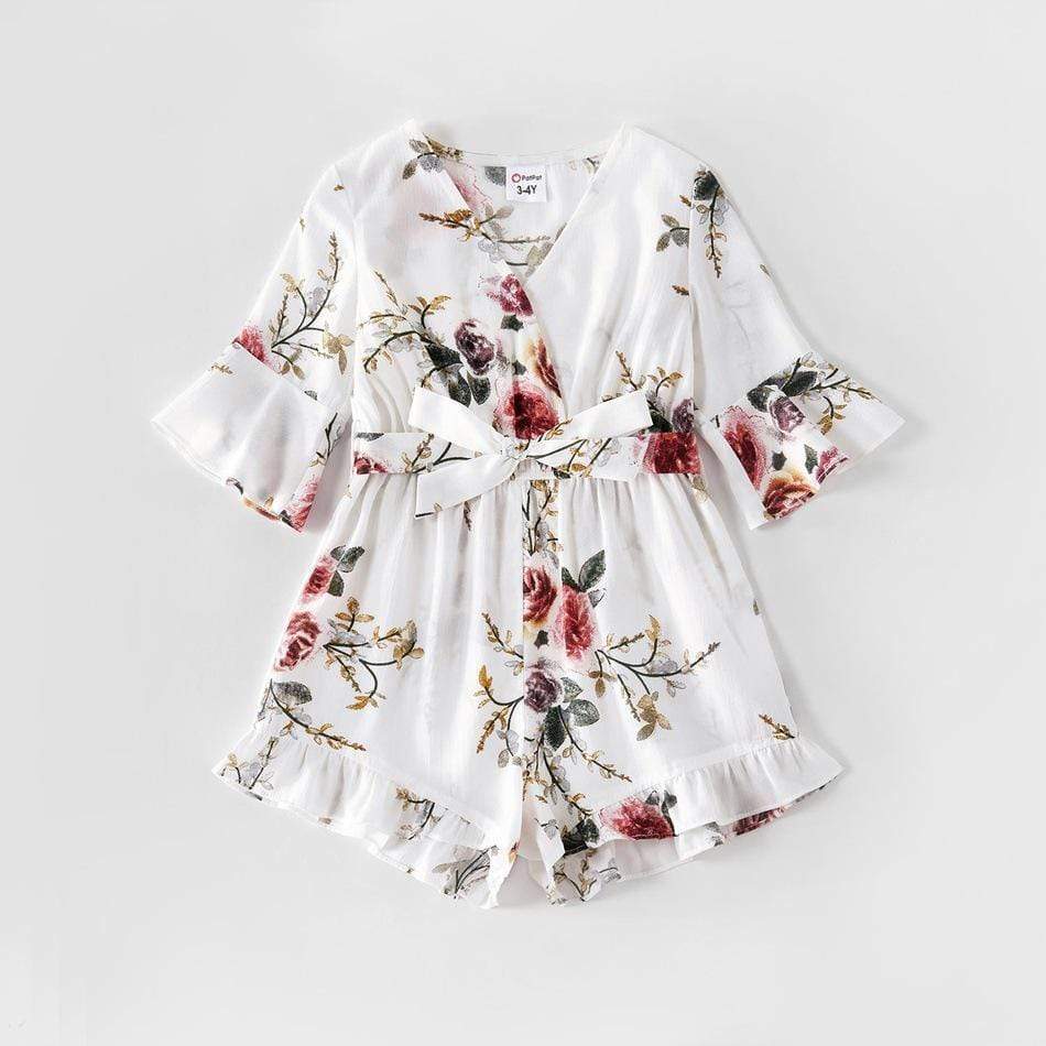 Maternity Floral V-neck Midi-sleeve Sling Rompers