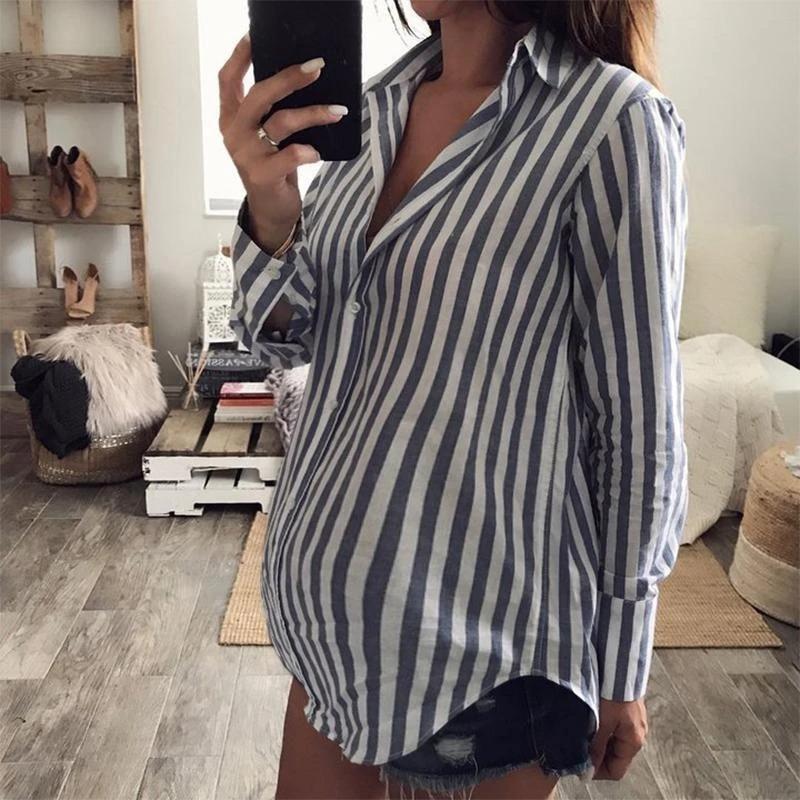 maternity casual fold over collar striped loose shirt