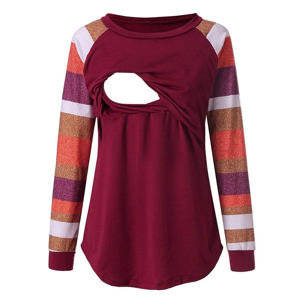 Stylish Striped Long-sleeve Nursing Top