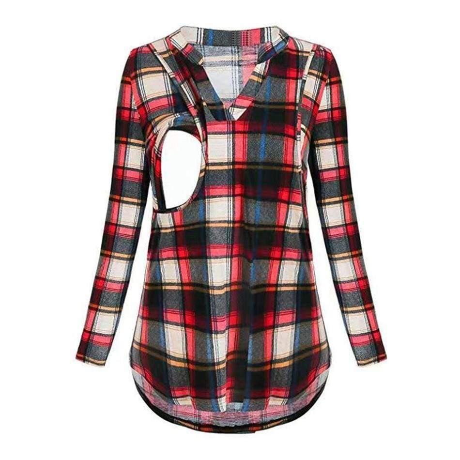Stylish Plaid Long-sleeve Nursing Shirt