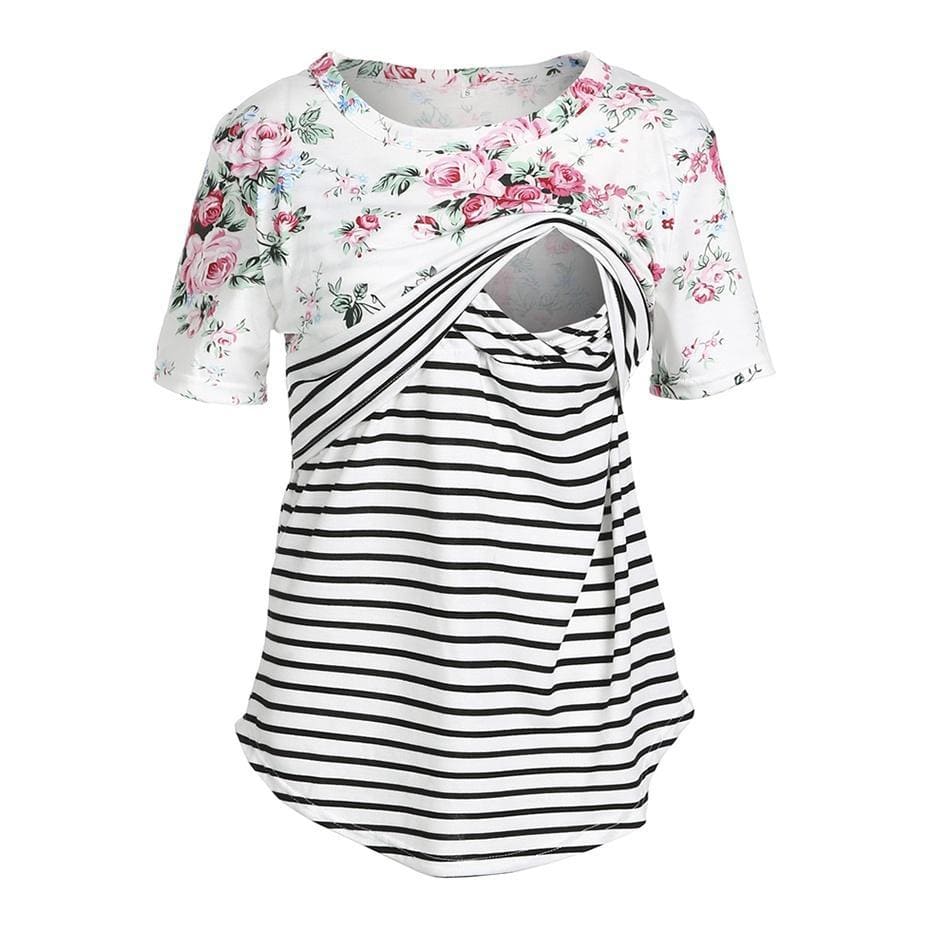 Striped Floral Short-sleeve Maternity Nursing Top