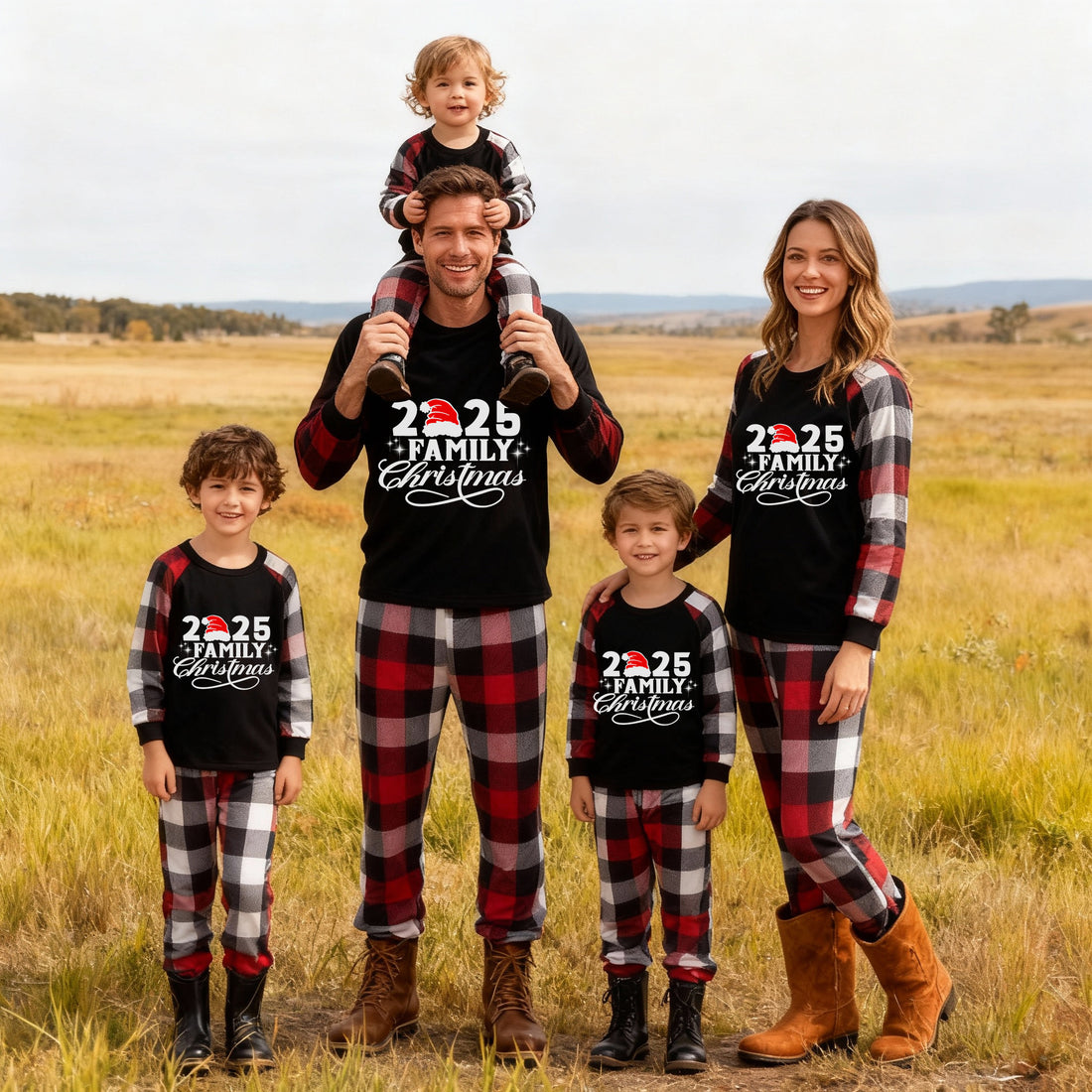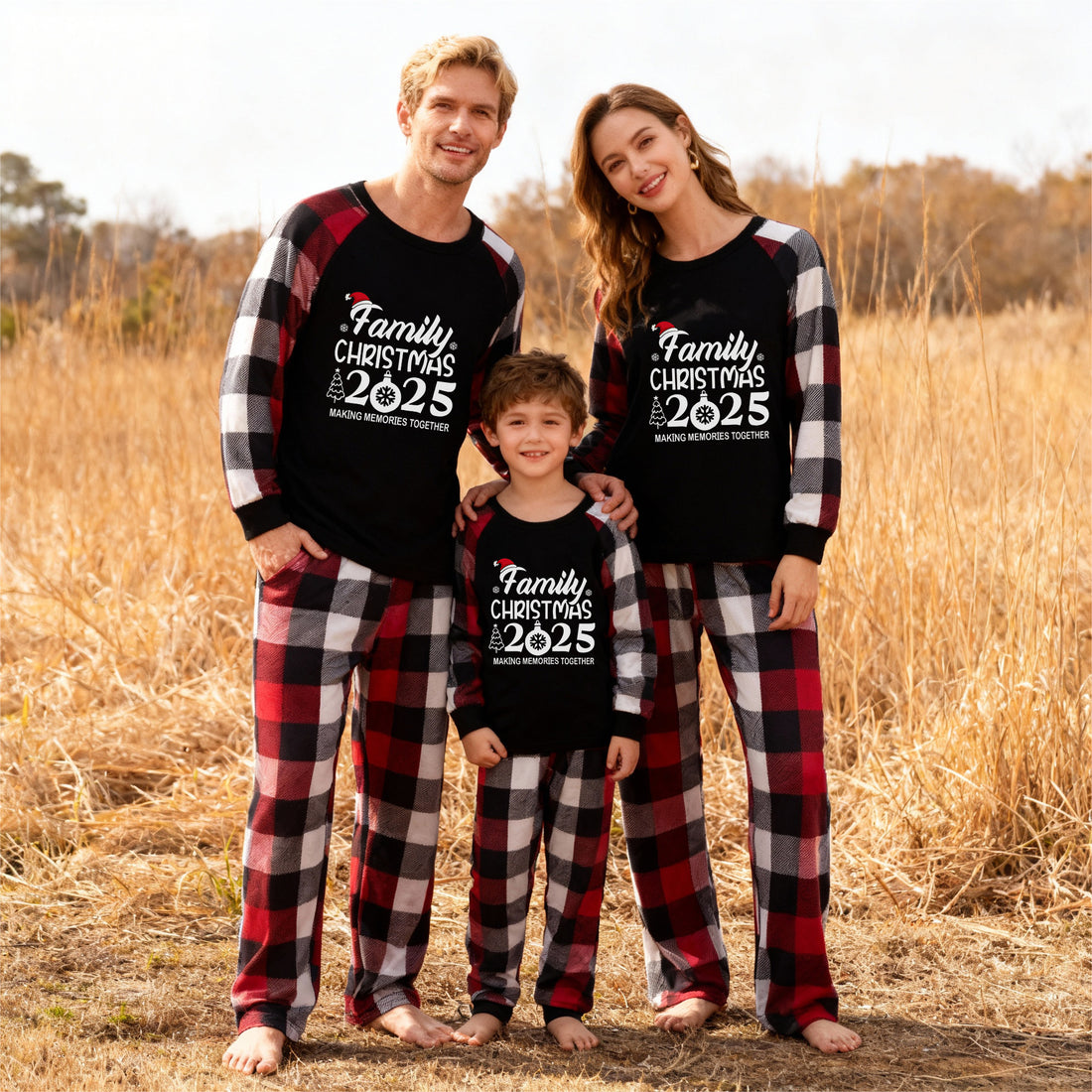 "Family Christmas 2025" Pattern Ⅱ- Red&Black&White Plaid Matching Pajamas