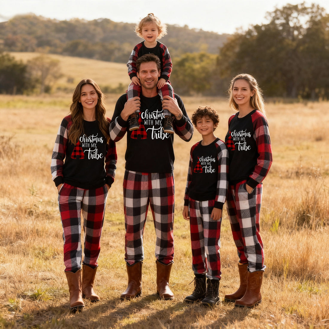 "Christmas With My Tribe" Pattern Ⅱ - Red&Black&White Plaid Matching Pajamas