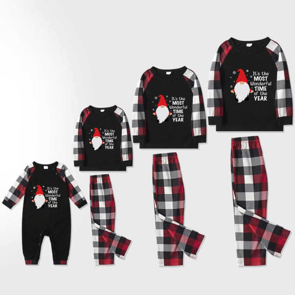 Christmas Family Matching Pajamas-Red and Gray Plaid Pjs set with "It is the most wonderful time of the year" and Gnome Print