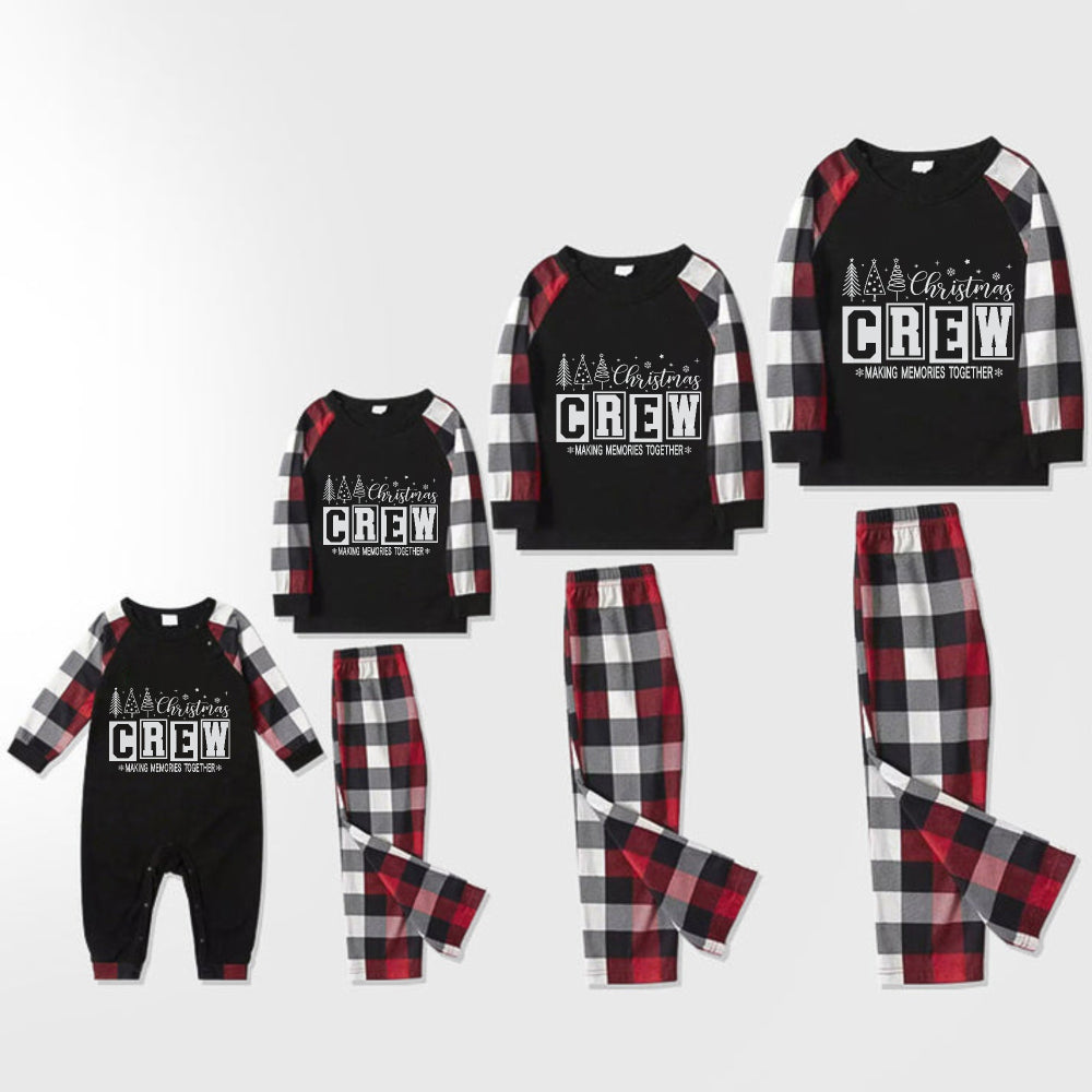 Christmas Family Matching Pajamas-Red and Gray Plaid Pjs set with “Christmas Crew Making Memories Together” Print