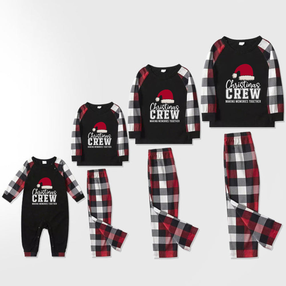 Christmas Family Matching Pajamas-Red and Gray Plaid Pjs set with Santa Hat and “Christmas Crew Making Memories Together” Print