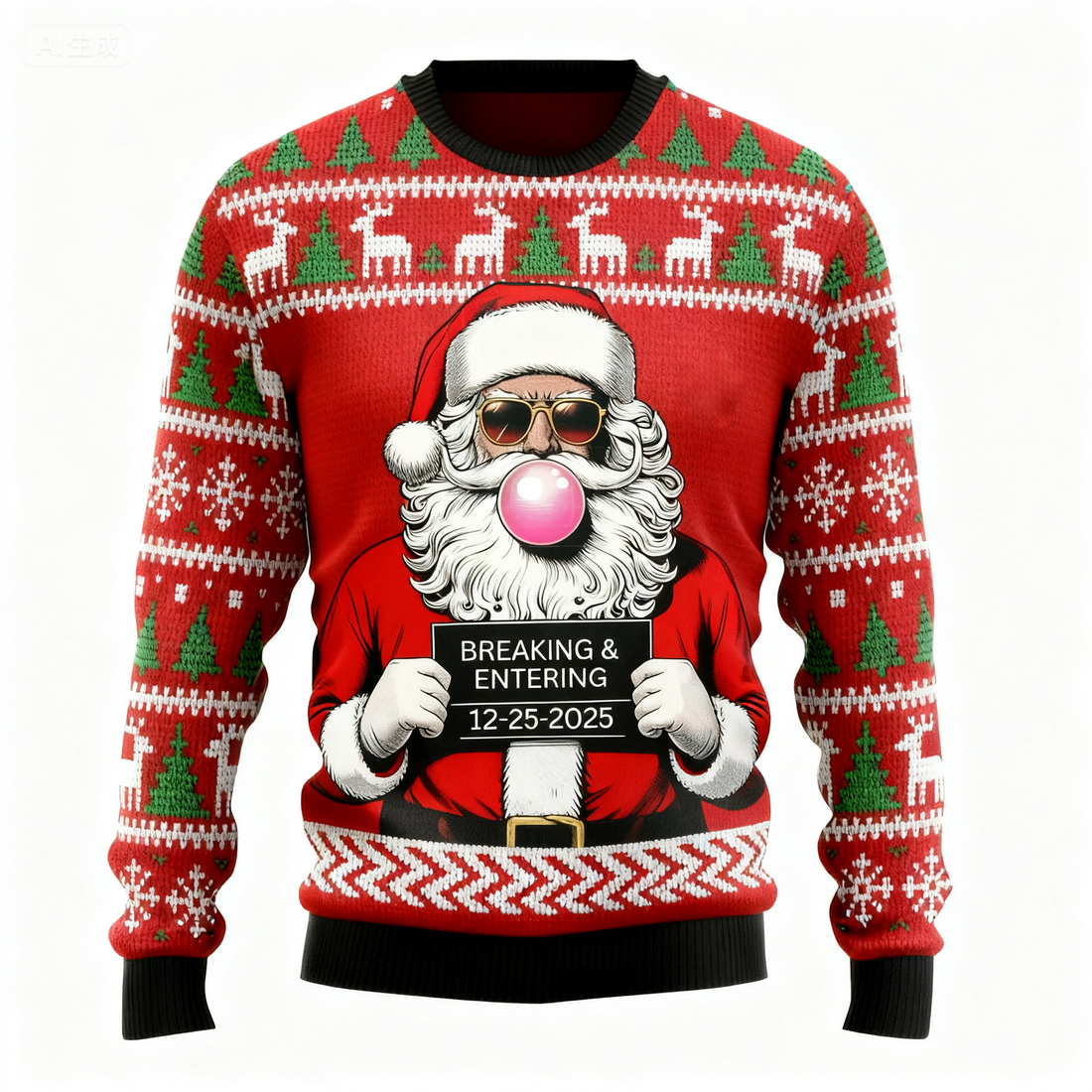 Funny Christmas Gift Santa Print Sweater - Ugly & Cozy Unisex Pullover