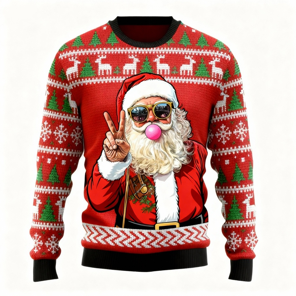 Zany Santa Pattern Ugly Sweater - Unisex Christmas Party Essential