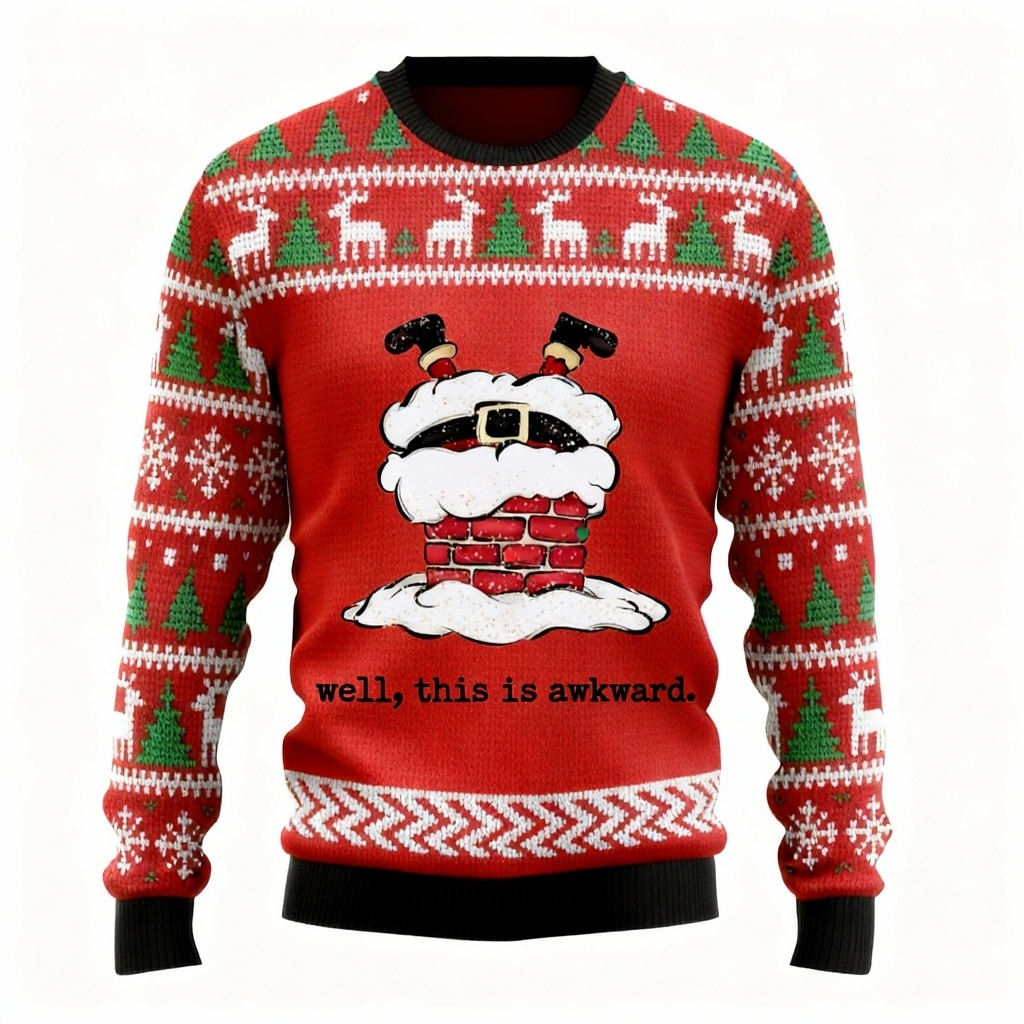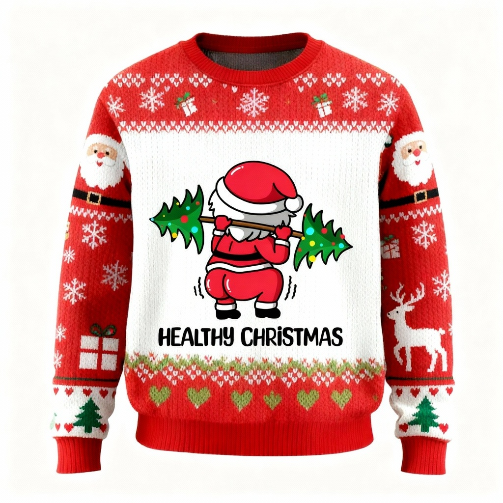 Santa Print Ugly Christmas Sweater Gift - Best Funny Holiday Present