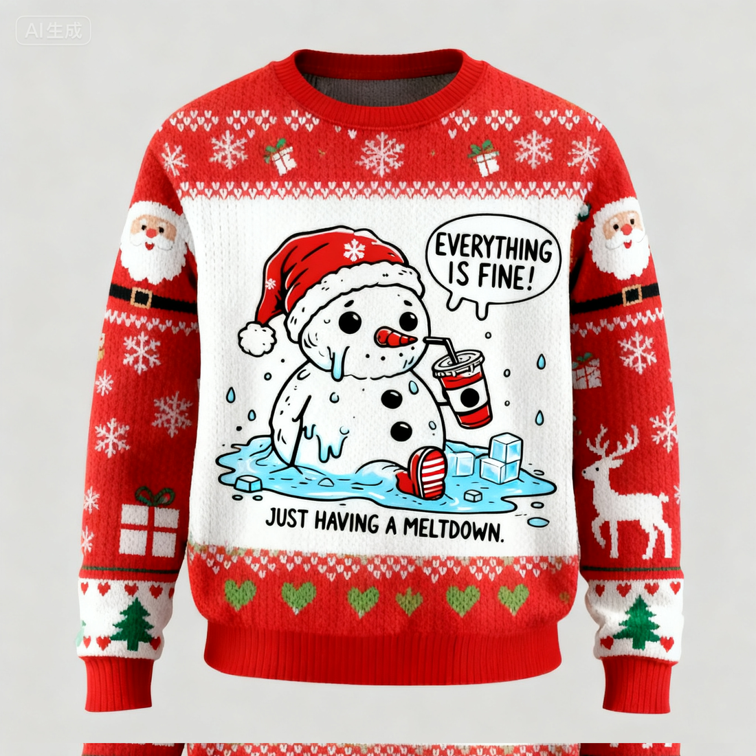 Zany Santa Pattern Design Sweater - Ugly & Cozy Unisex Pullover