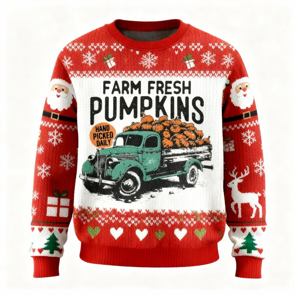 Pumpkin Car Pattern Ugly Sweater - Unisex Christmas Party Essential