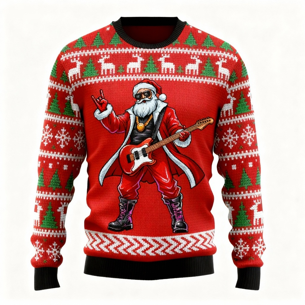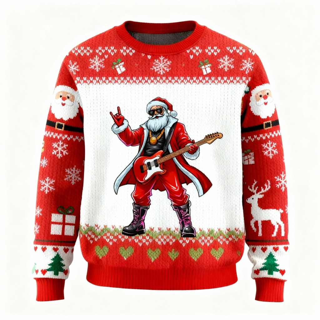 Rock Santa Pattern Ugly Sweater - Unisex Christmas Party Essential