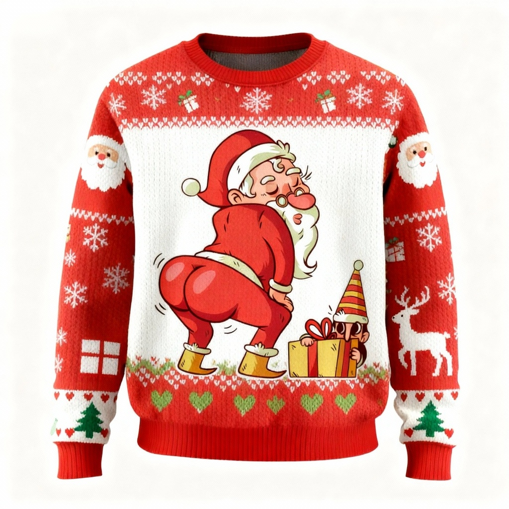 Softest Unisex Playful Santa Claus Christmas Sweater - Ugly Holiday Party Jumper