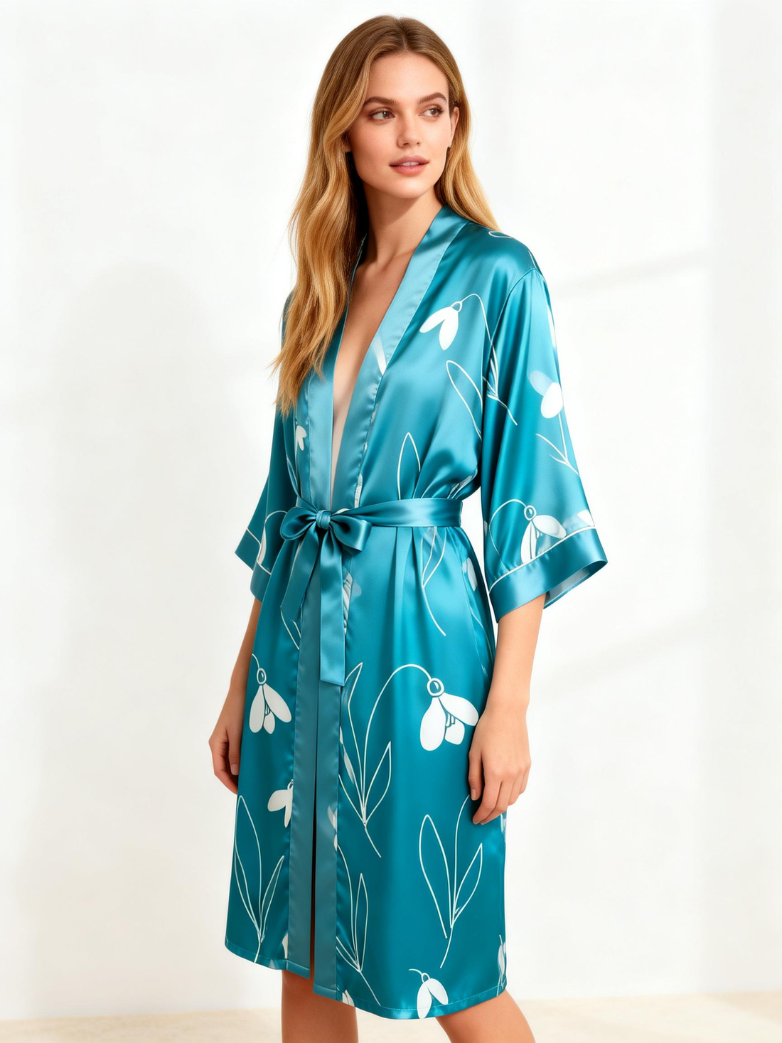 Silk-Like Satin Robe & Slip Set - Printed Sleep Loungewear