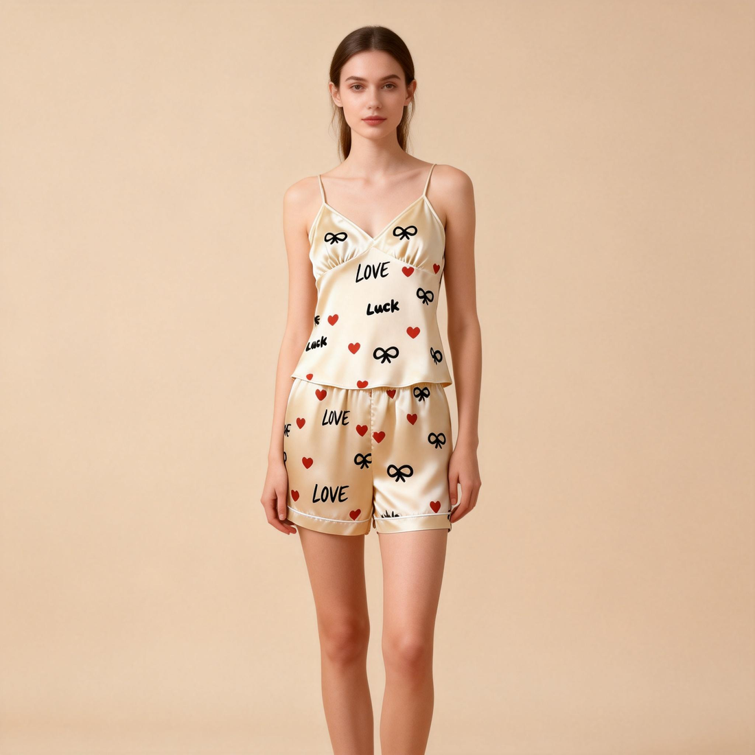 Elegant Women Sleepwear Satin Short Pajama Set