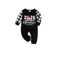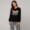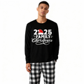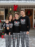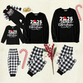 "2025 Family Christmas" Letter Print Black Long Sleeve Top with Black And White Plaid Pants Family Matching Pajamas