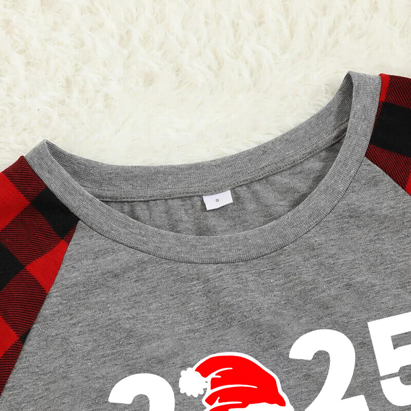 "2025 Family Christmas" Letter Print Black & Red Plaid Family Matching Grey Pajamas With Dog bandana