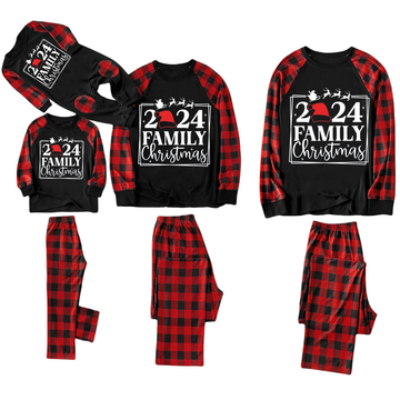 "2025 Family Christmas" Text and Santa Hat Print Black & Red Plaid Family Matching Pajamas