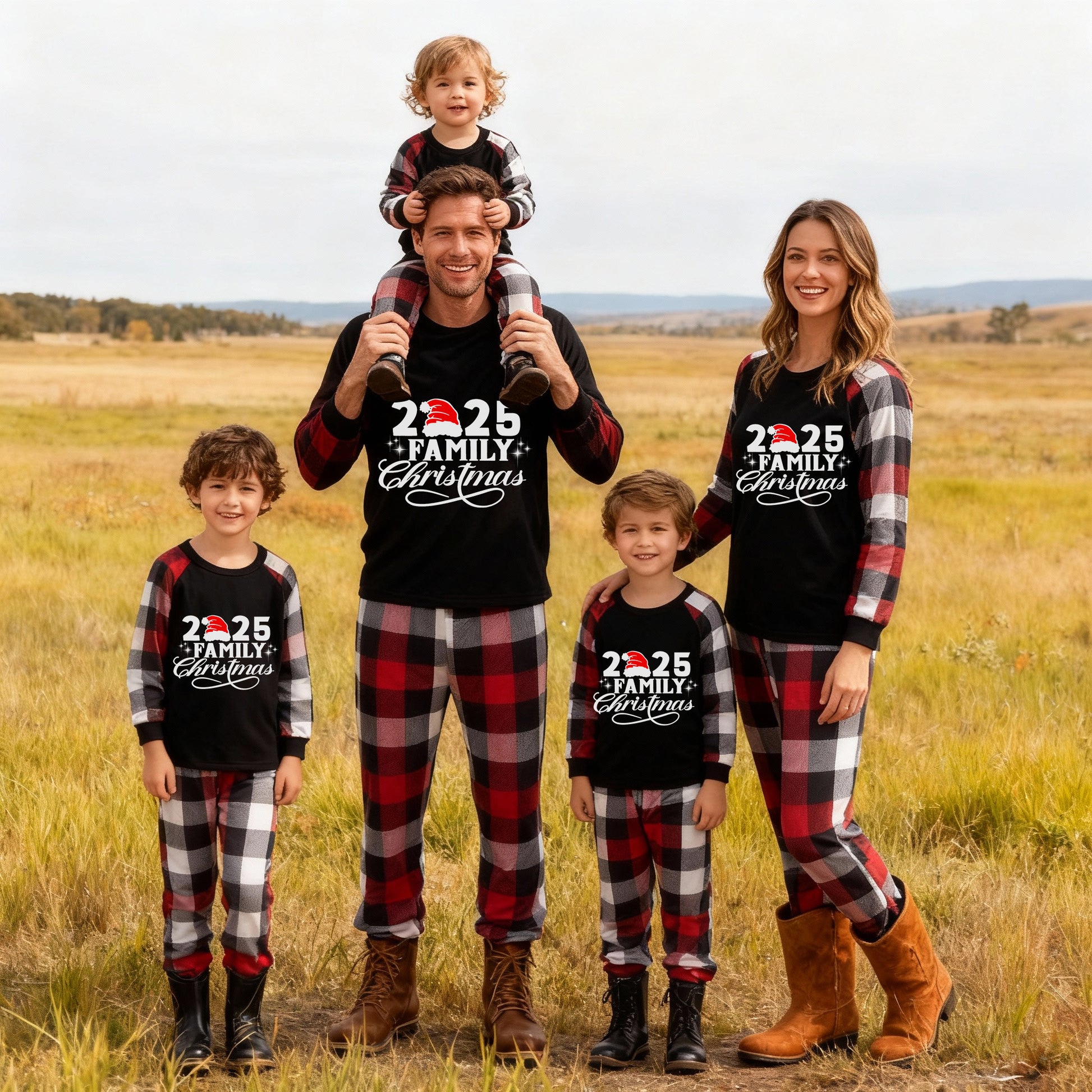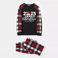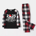 "2025 Family Christmas" Letter Print Red & Black & Grey & White Plaid Family Matching Pajamas