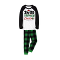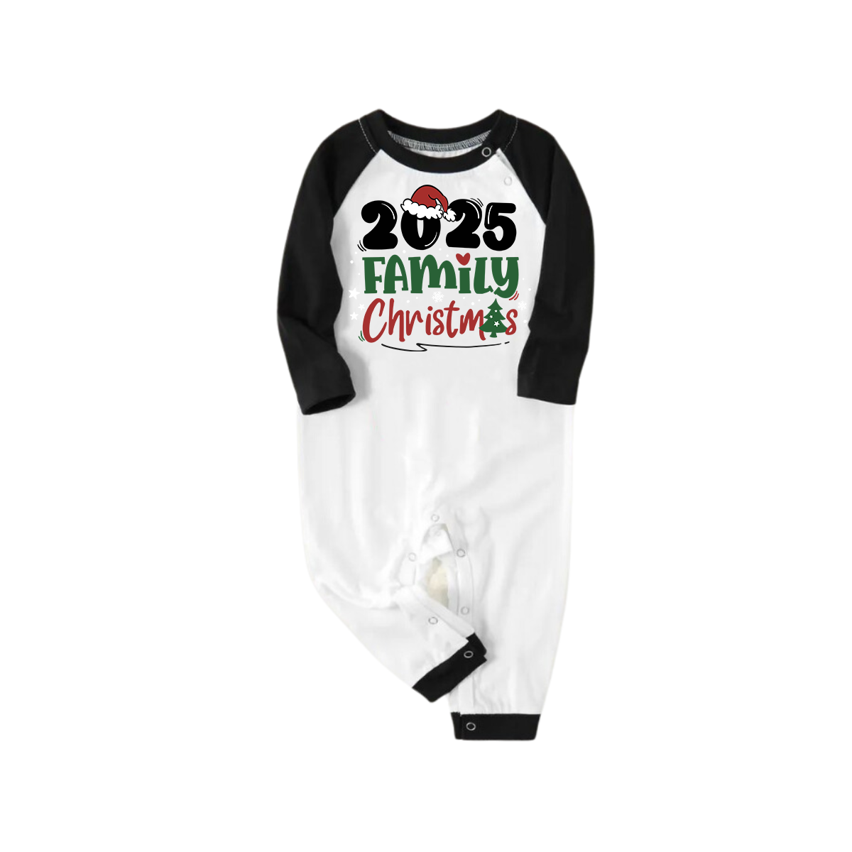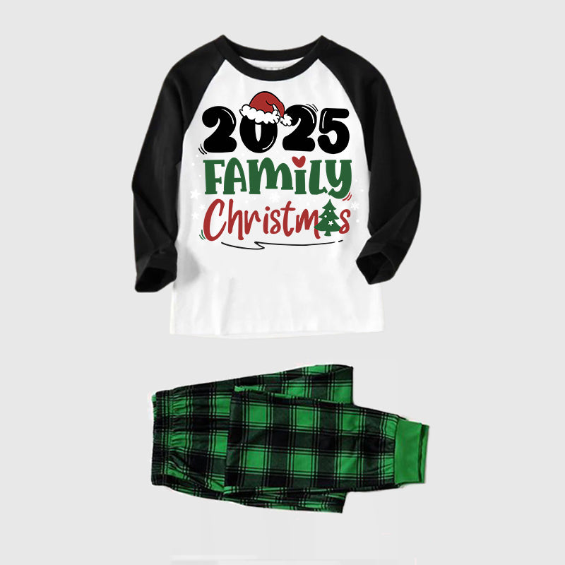 2025 Family Christmas Pajamas Set - Black Raglan Sleeve White Top Green and Black Plaid Pants Graphic