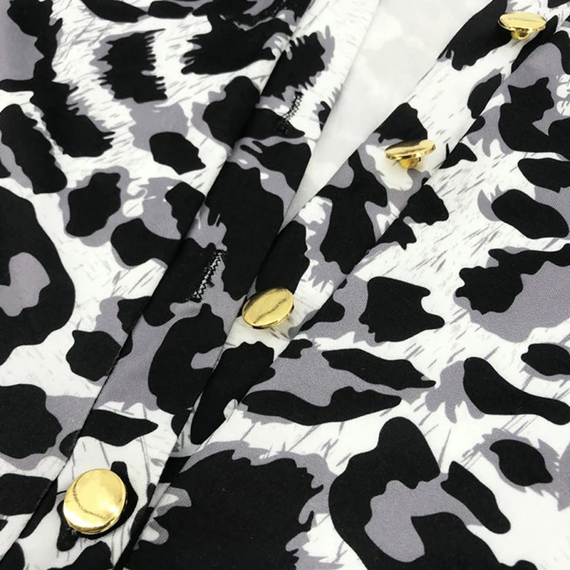 Leopard Prinetd V Neck Tops Long Sleeve Bodysuit