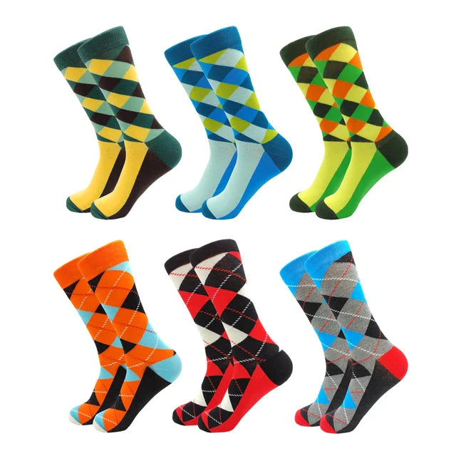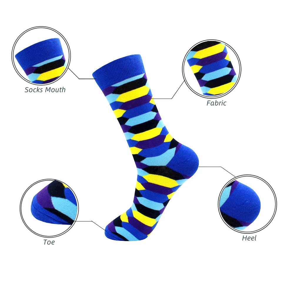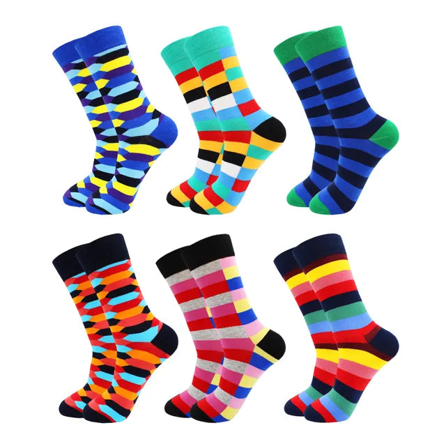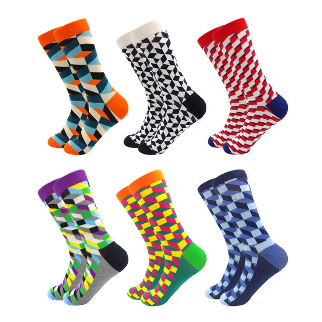 3 Pairs Colorful Cotton Casual Funny Stripe Grid Geometry Fun Dress Socks