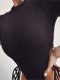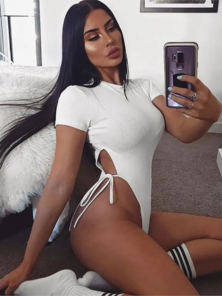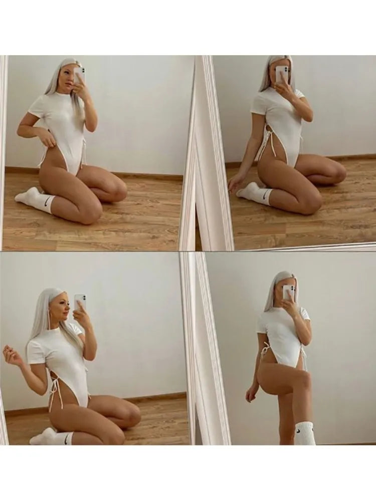 women's rib knit solid color waist strap short-sleeved bodysuit