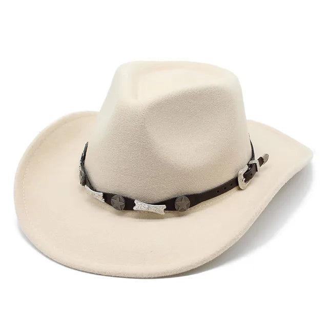 Experience the charm of British style with our Western Cowboy Hat, perfect for men and women alike. Crafted with classic cowgirl felt and leather accents, this hat exudes sophistication and jazz flair. Whether you're strolling through the countryside or attending a stylish event, embrace the timeless elegance of this versatile accessory. Step out in confidence with this stylish addition to your wardrobe.