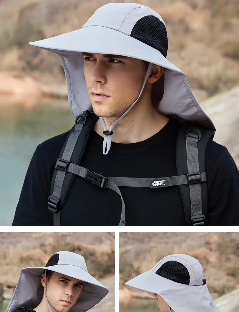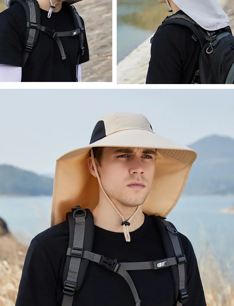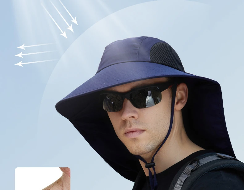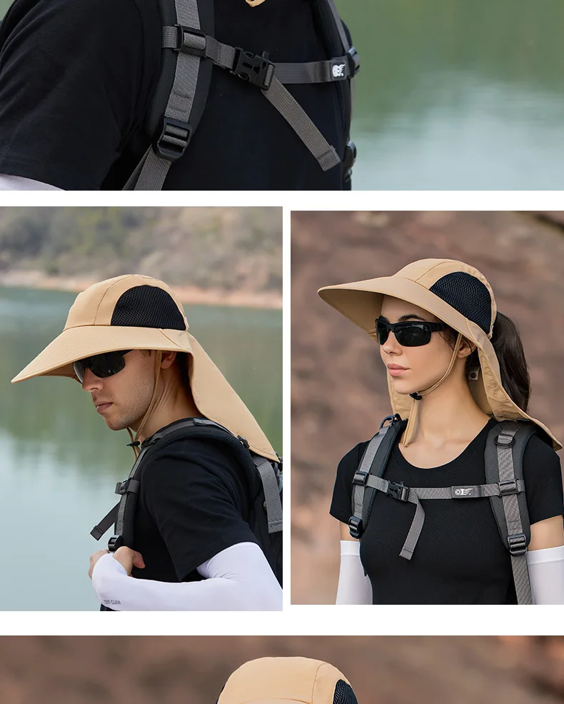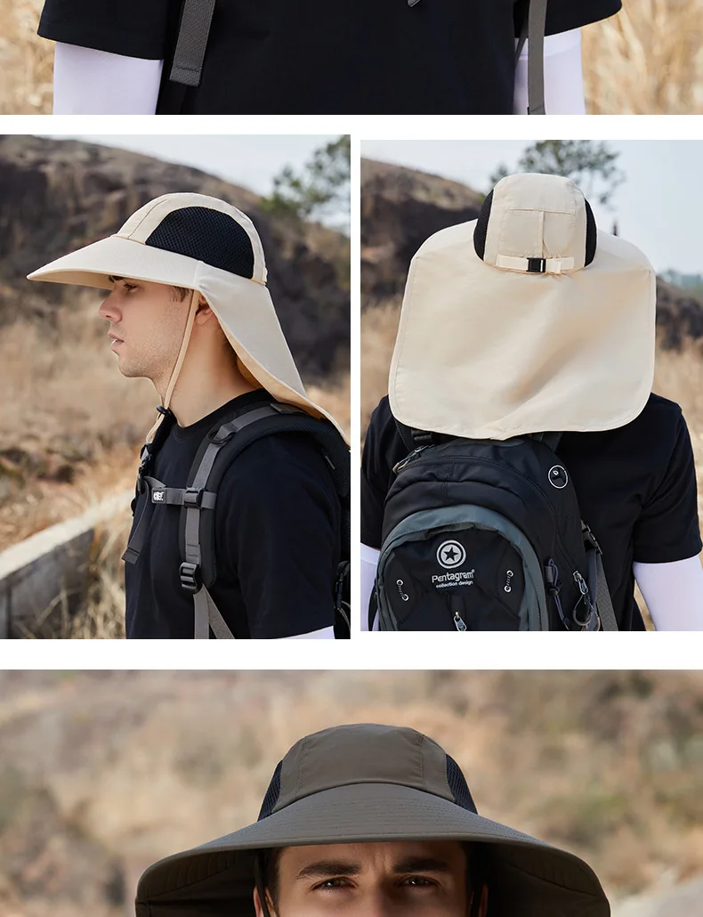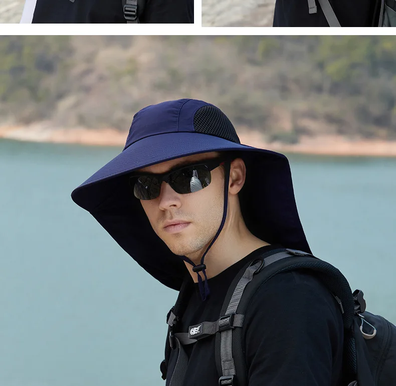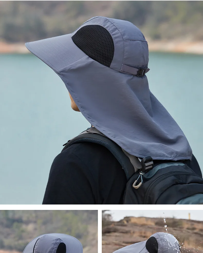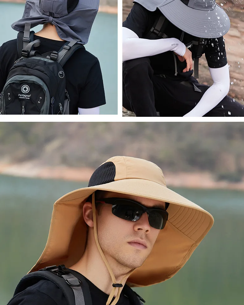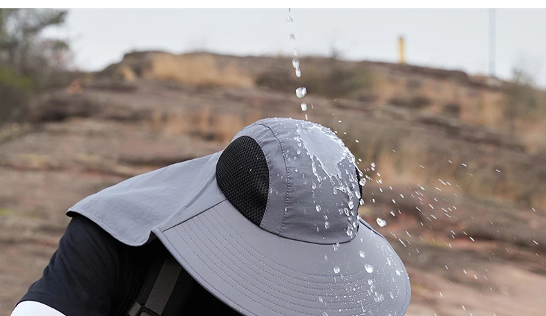 Unisex Summer Wide Brim Waterproof and Quick-drying Panama Caps Outdoor Visor Bucket Hats Mesh Breathable Sun Hat with Neck Flap