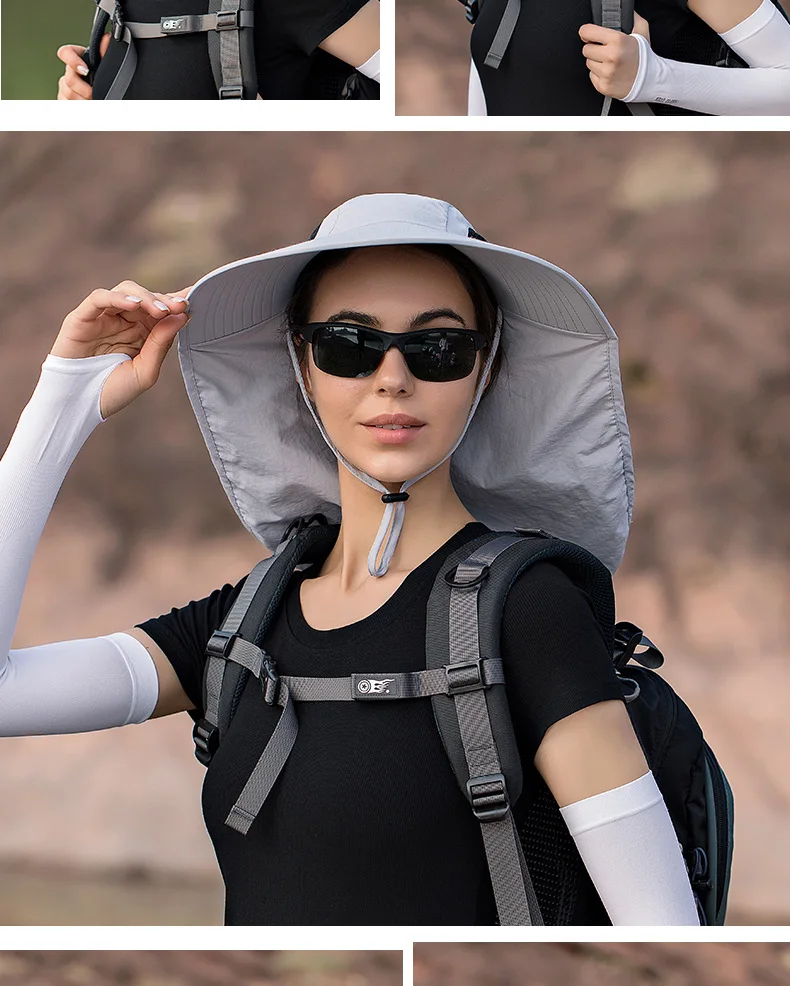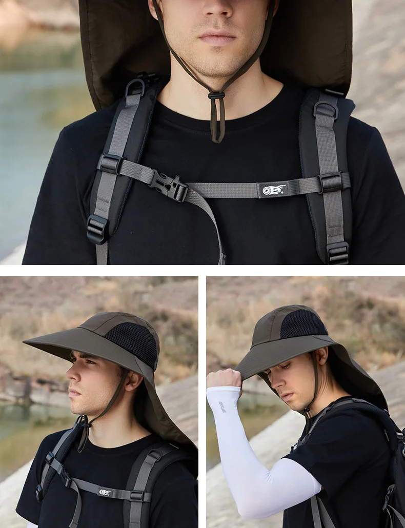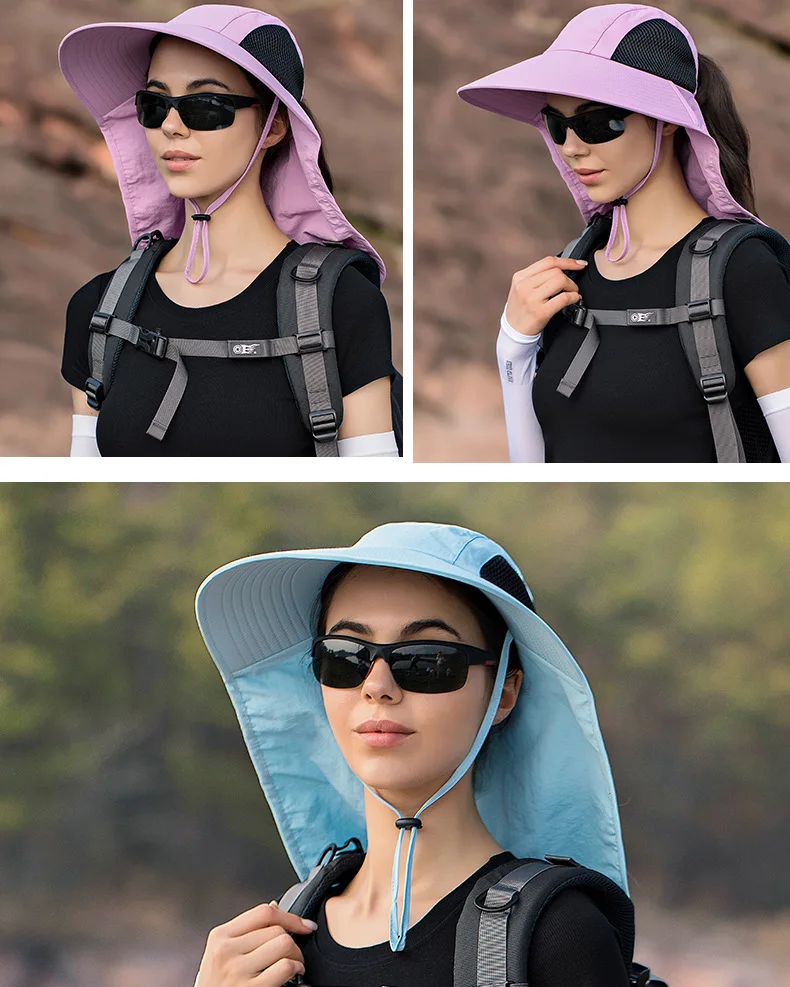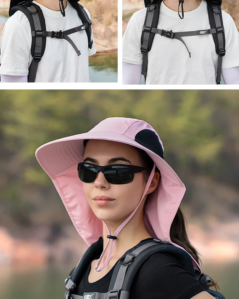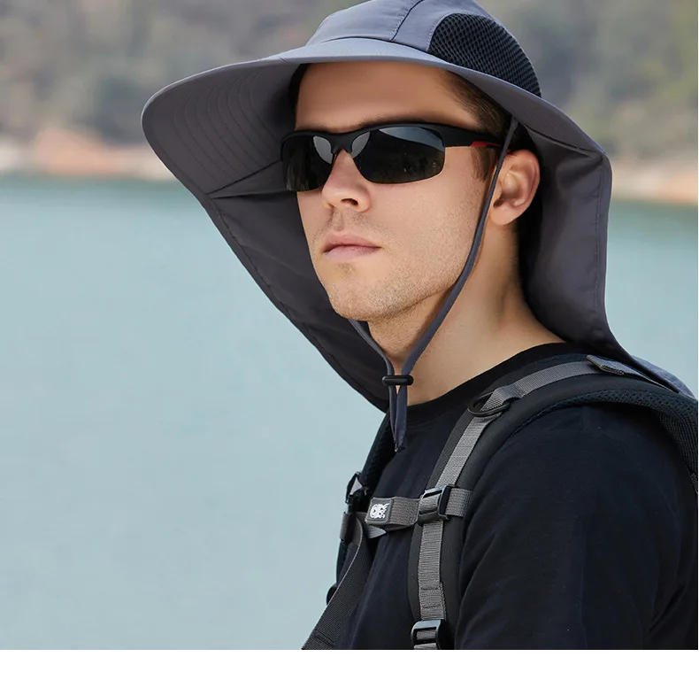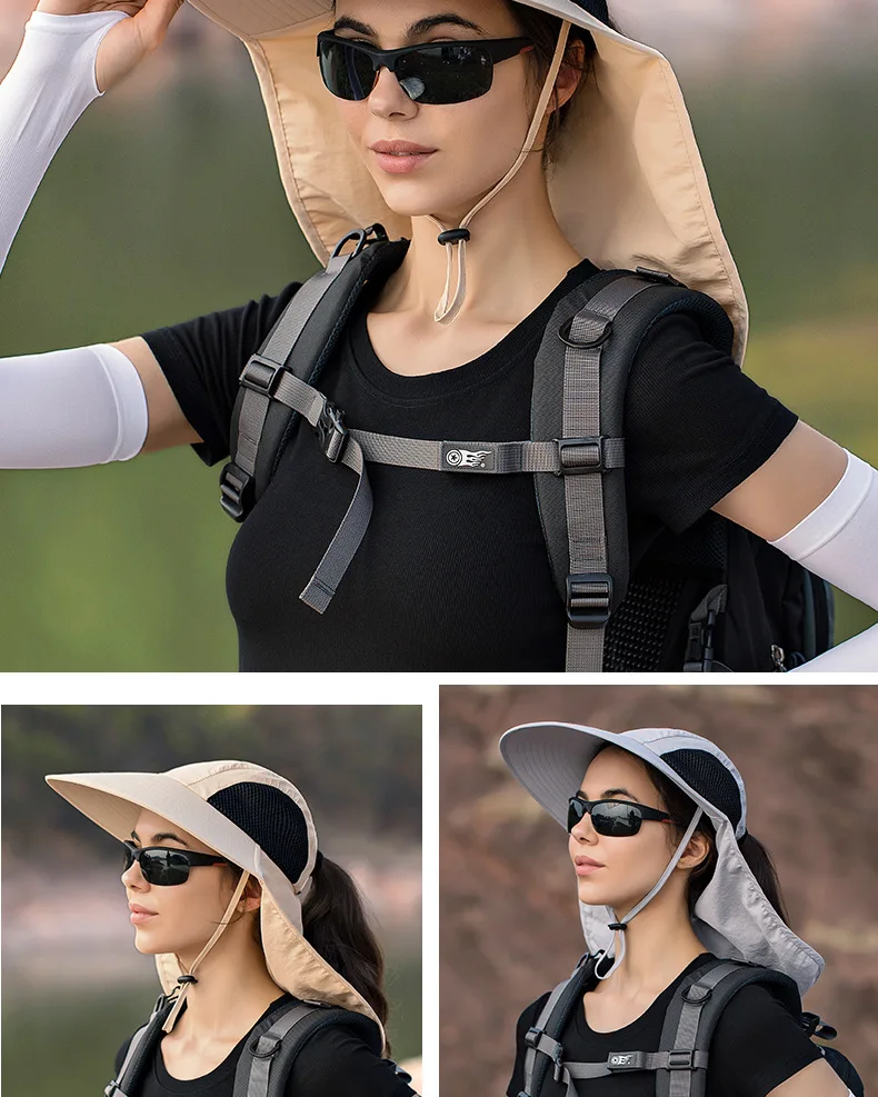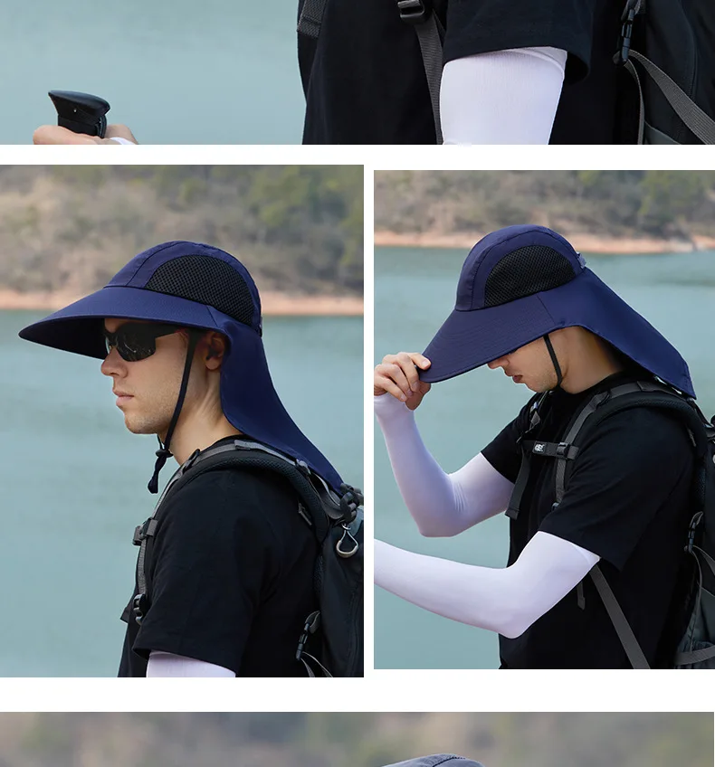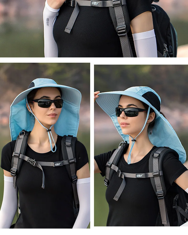 Unisex Summer Wide Brim Waterproof and Quick-drying Panama Caps Outdoor Visor Bucket Hats Mesh Breathable Sun Hat with Neck Flap