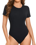 Women's Short Sleeve Cotton Bodysuit Crew Neck Summer Elegance